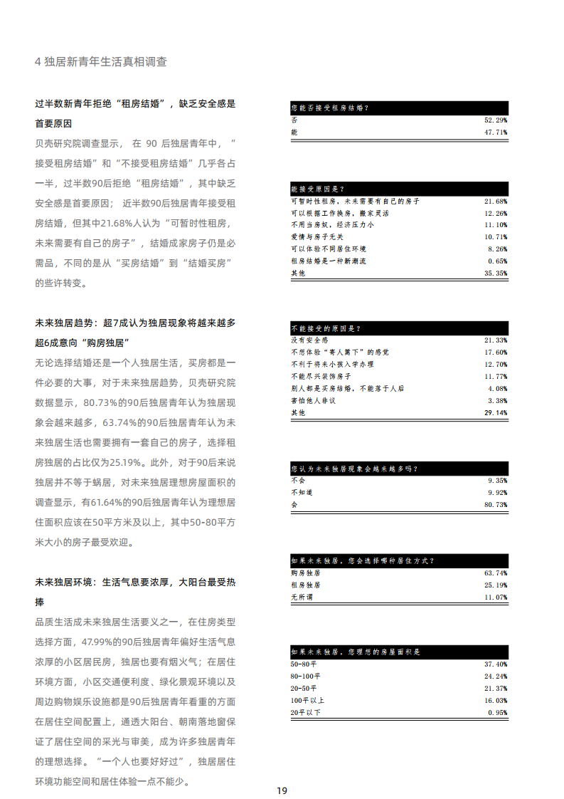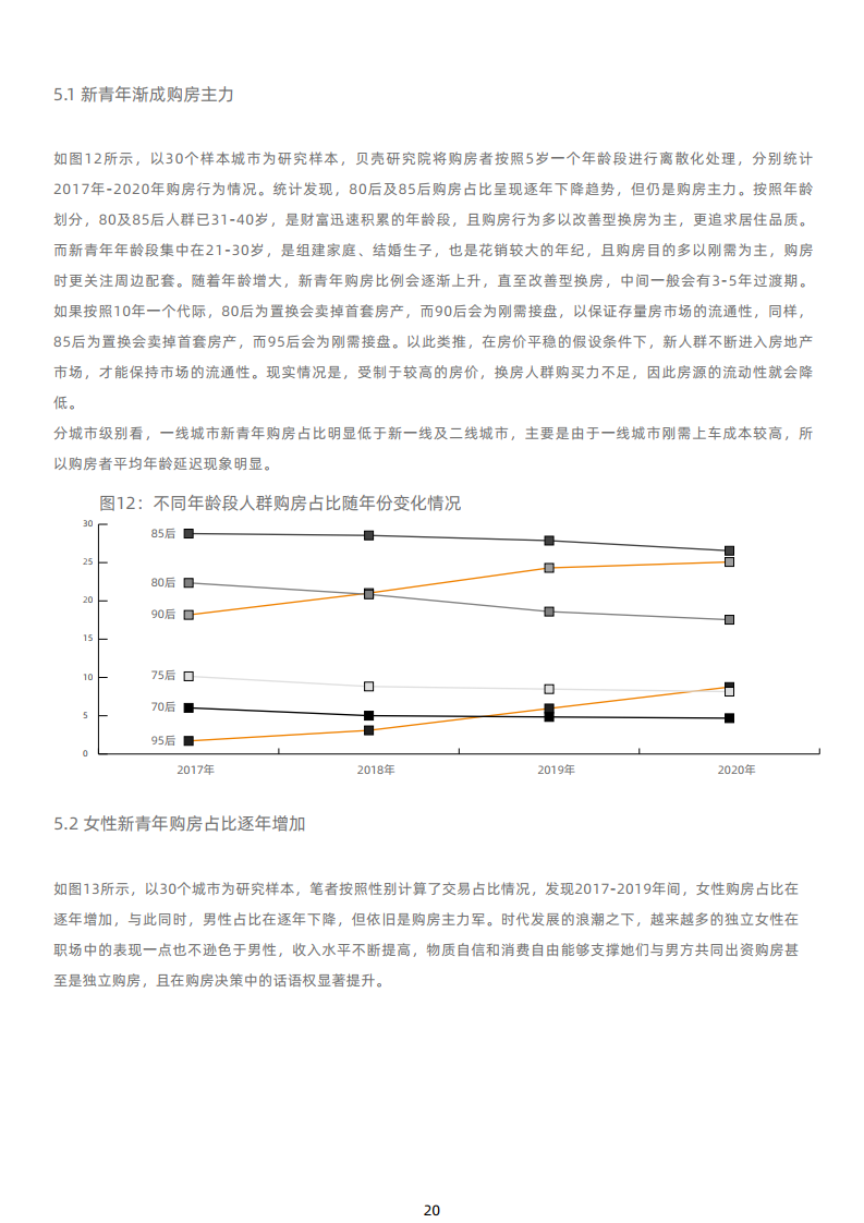 核心看点:1、后浪来袭!新青年购房势力正在崛起 2、线上化趋势明显,对服务质量要求更高 3、青年独居渐成趋势,理想住房 50-80 平米