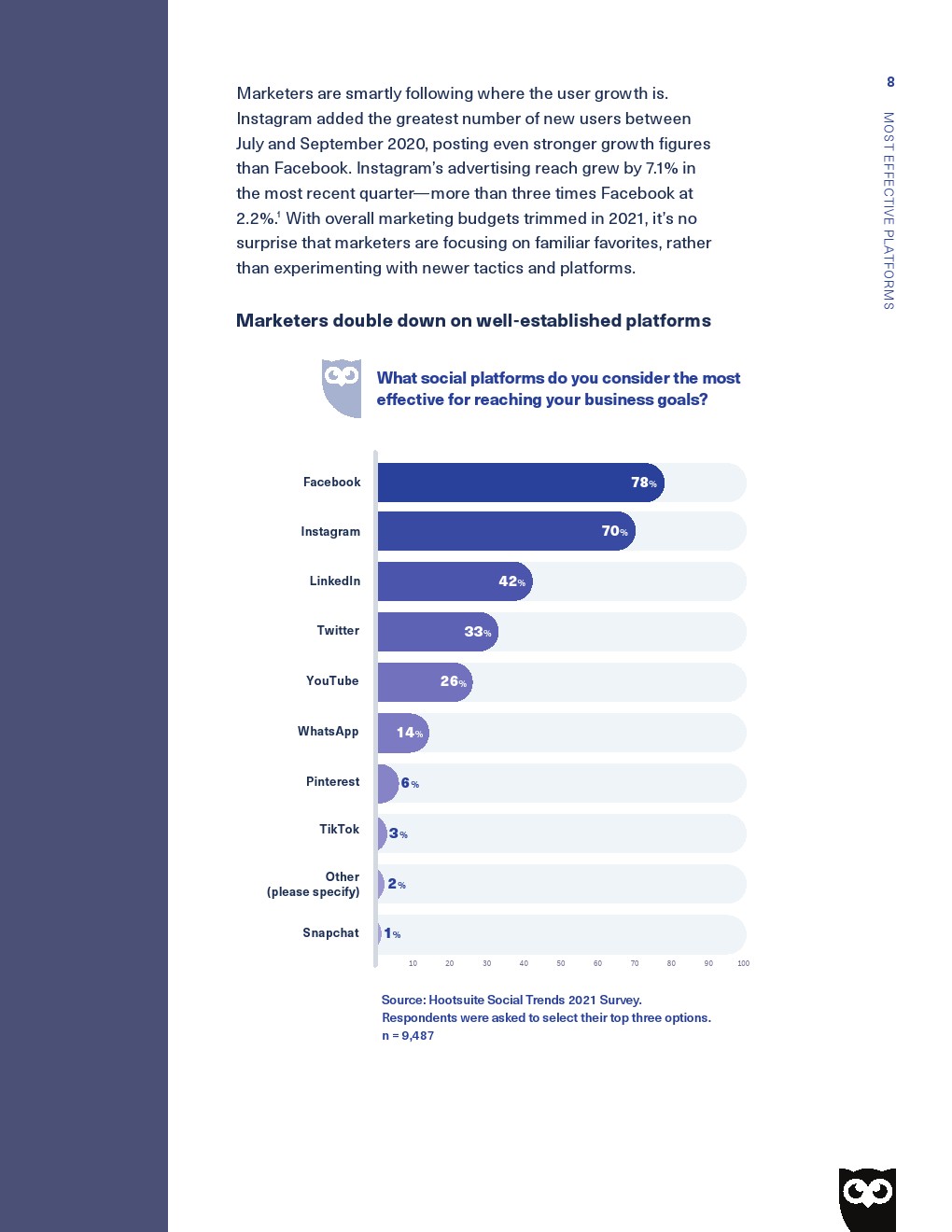 Hootsuite发布了“2021年社交趋势报告”对11189名营销人员和行业专家的采访调查对以及详尽研究,Hootsuite发现了2021年社交媒体的五大主要趋势: