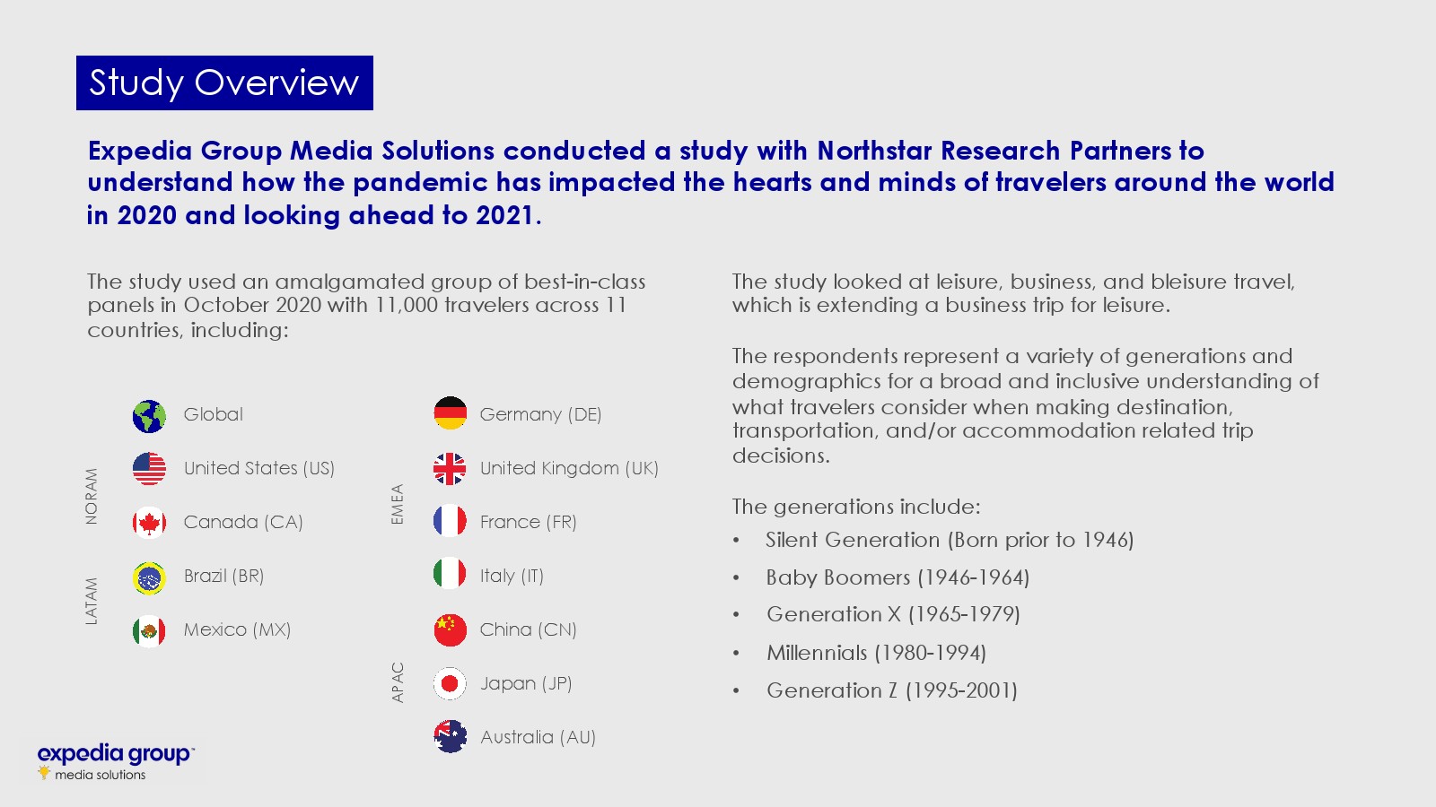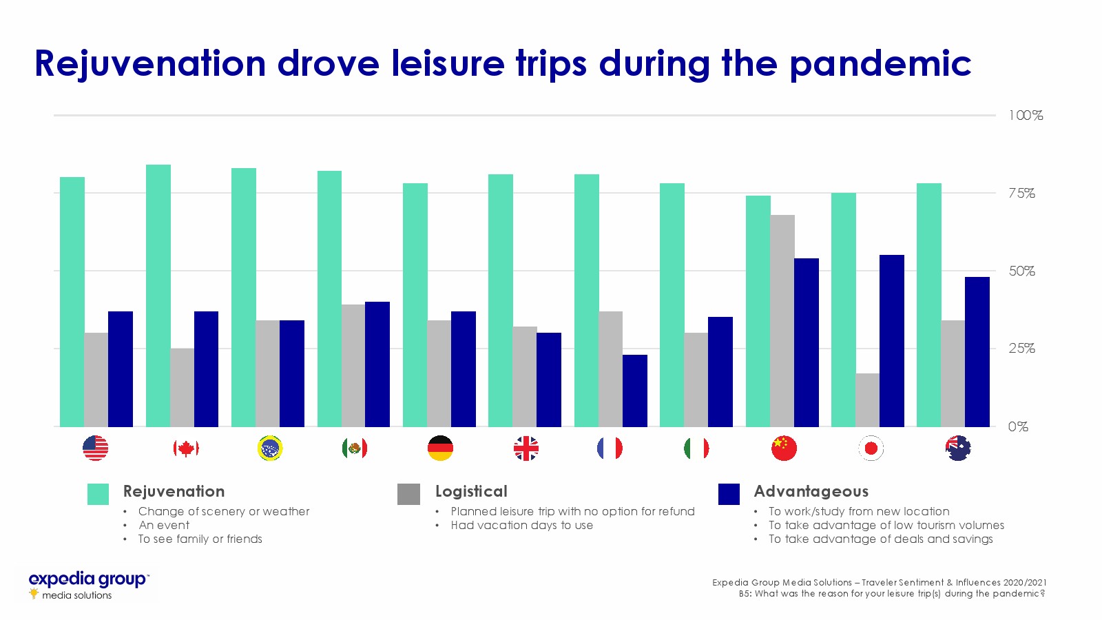 Expedia Group发布了“游客情感与影响报告2020-2021”,研究了全球11个国家和地区的旅游概况,以及大流行对旅游和购物行为的影响。11个国家包括澳大利亚、巴西、加拿大、中国、法国、德国、意大利、日本、墨西哥、英国和美国。