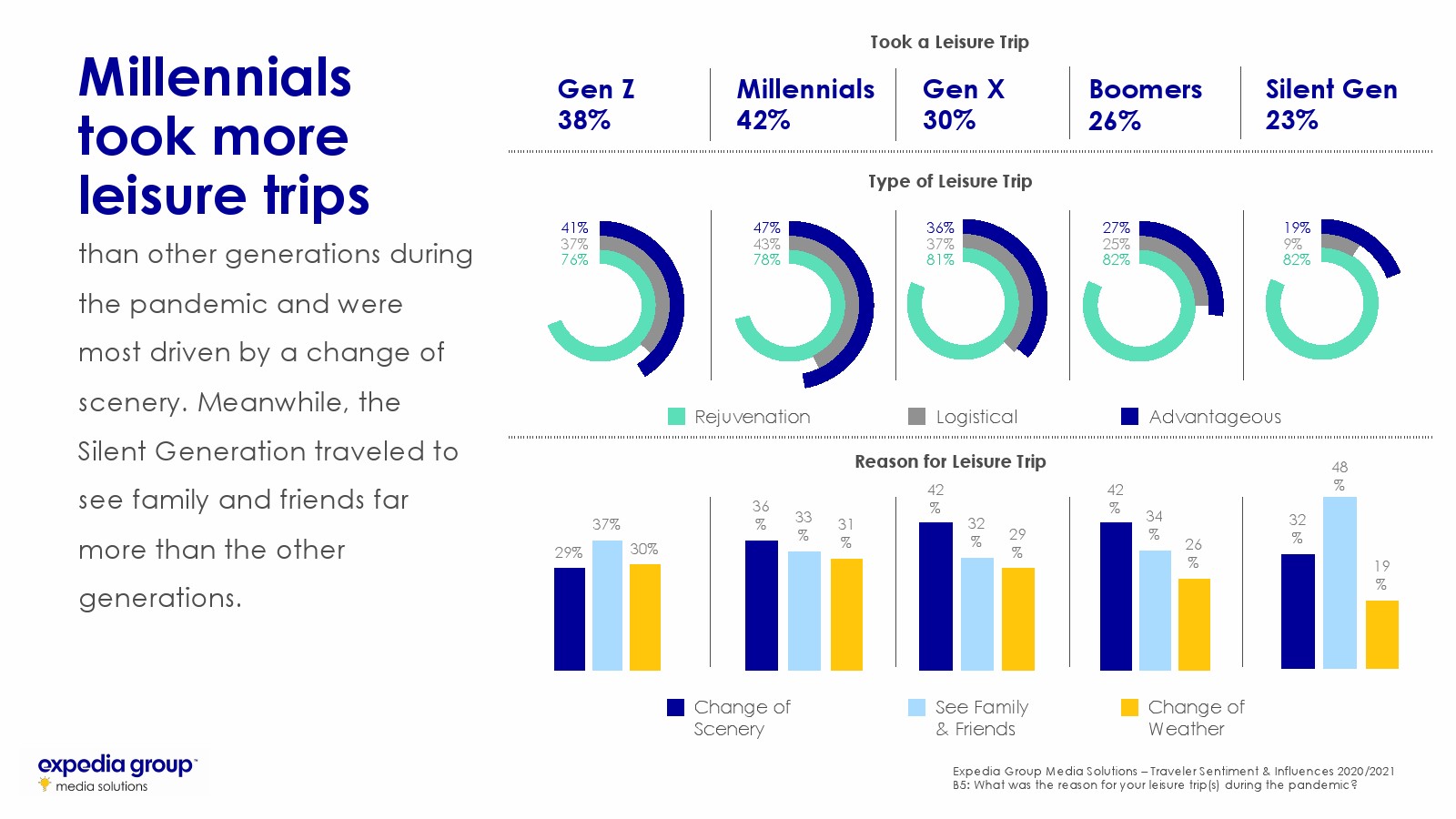 在全球范围内,2020年2/3的游客由于COVID-19取消了计划中的旅行。只有33%的游客在大流行期间进行了旅行。在那些旅行的人中有8/10是为了焕发青春。研究将其定义为寻找不同的风景,与家人或朋友见面或庆祝活动等。