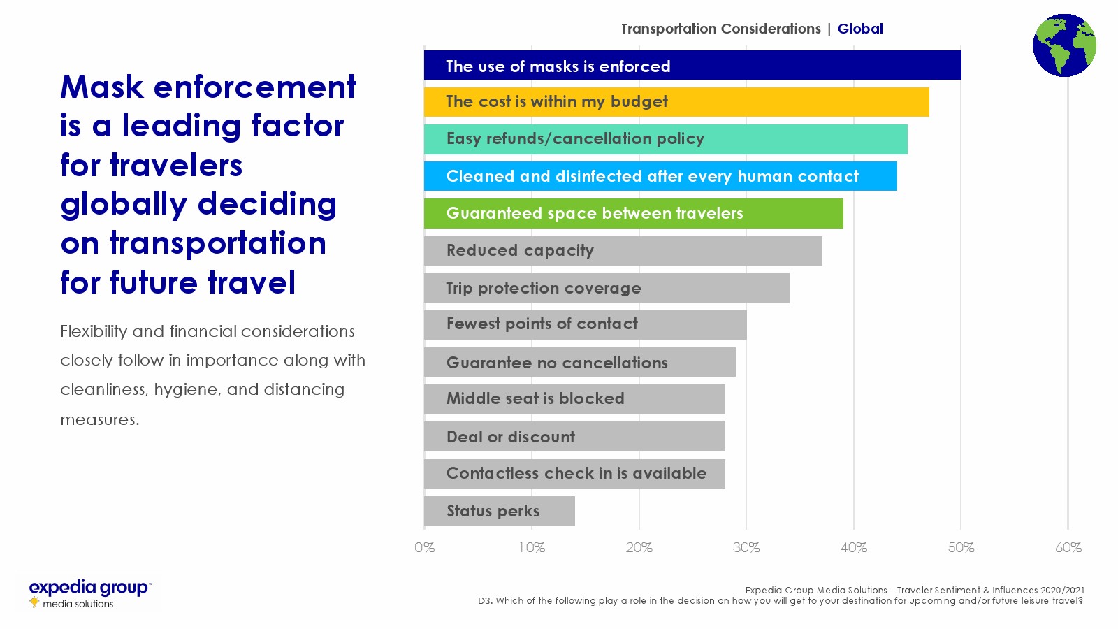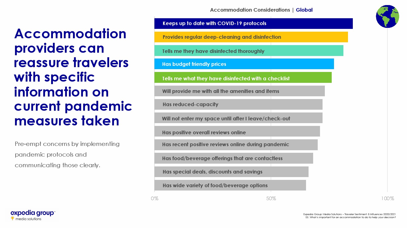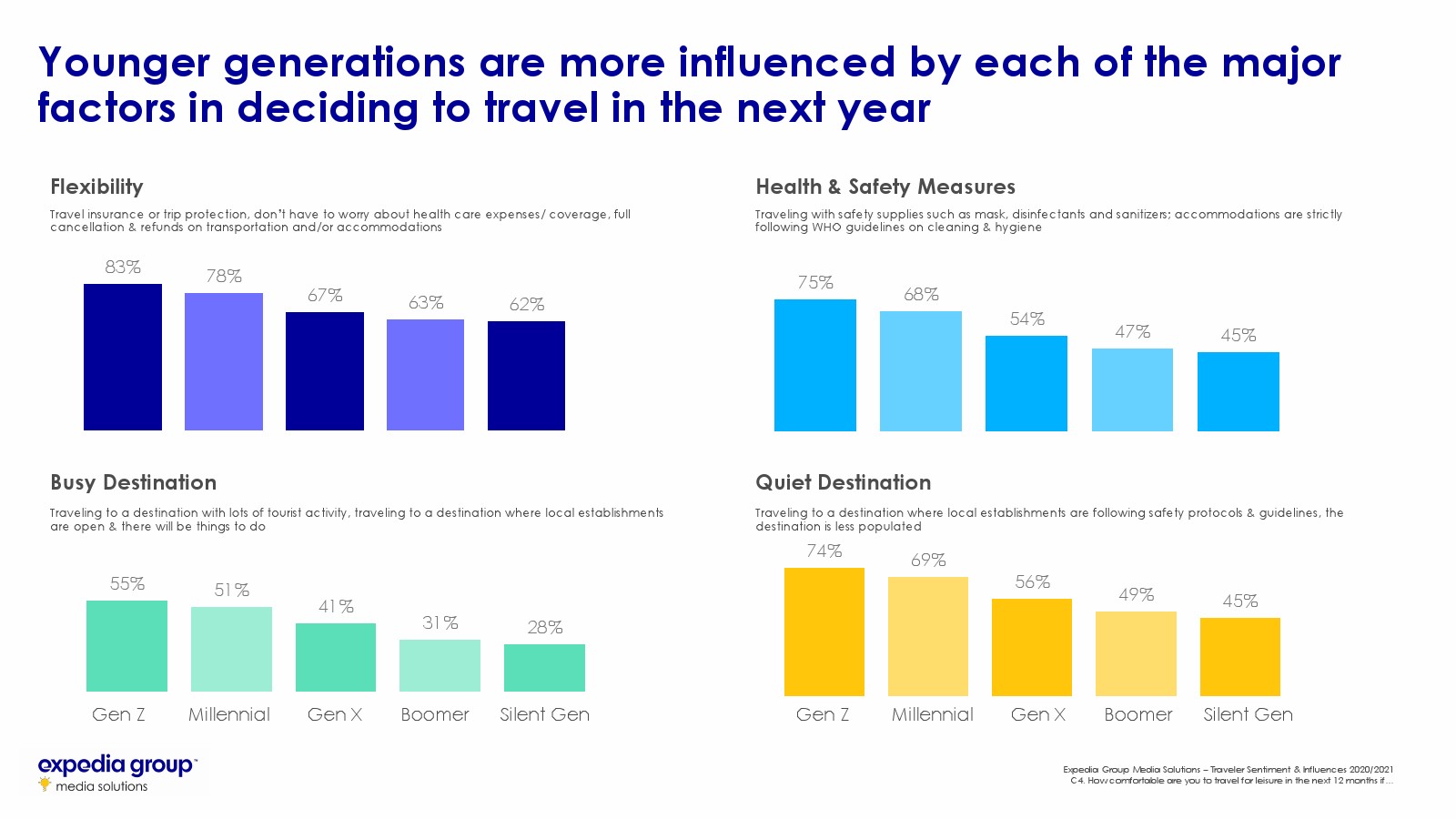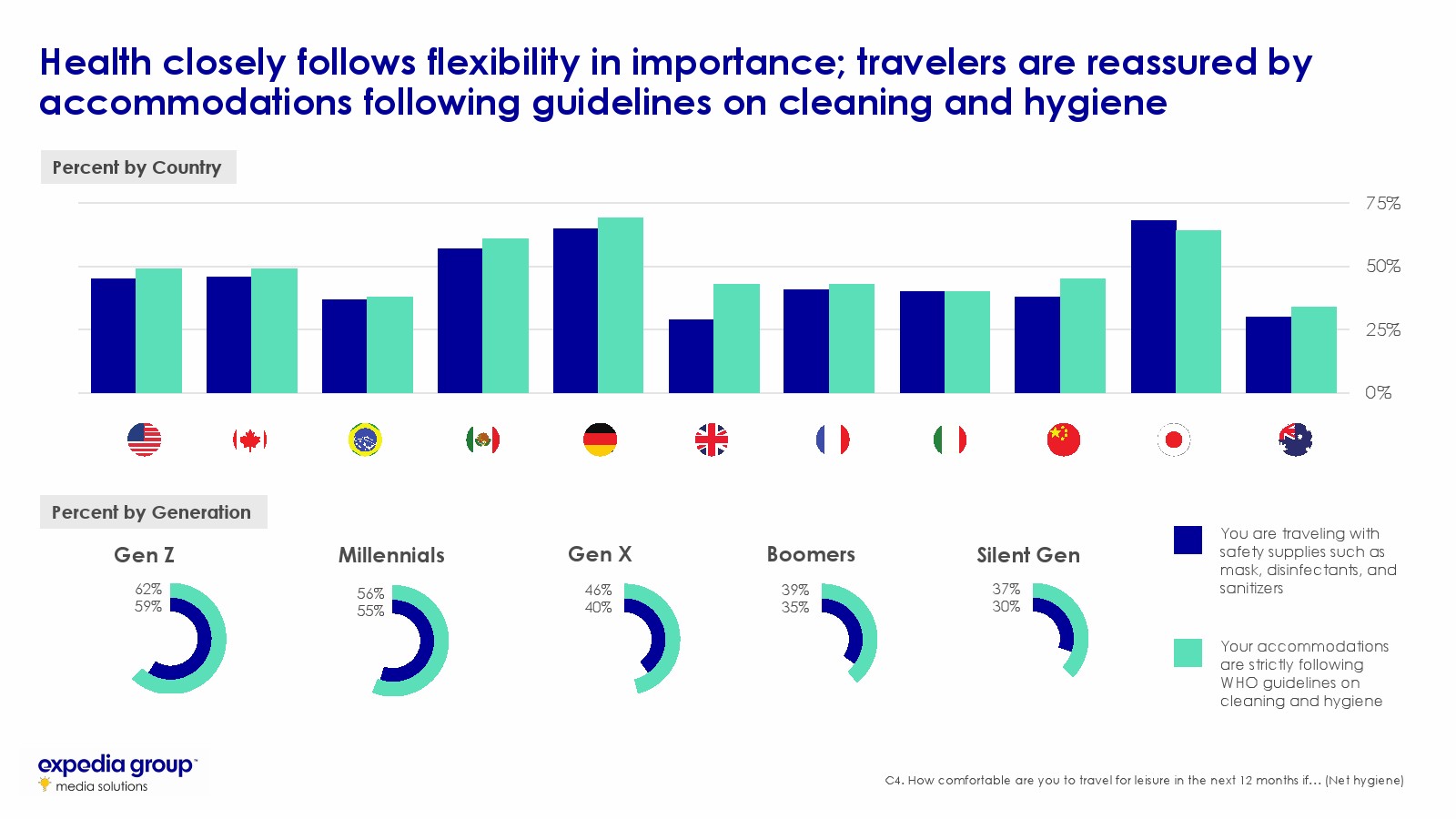 卫生和灵活性:旅行者希望将其健康风险最小化,并保护自己和亲人免遭财务挫折。关于流行病应对措施的信息应放在品牌传播的最前沿,并需要灵活预订或全额退款等政策,这样旅行者才能放心。