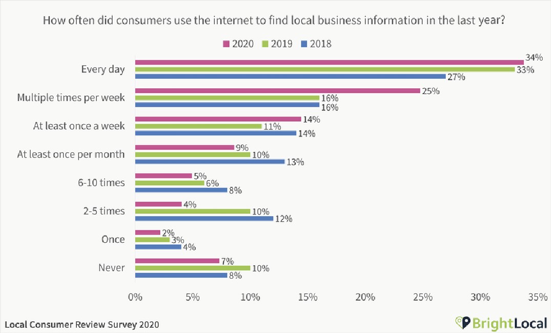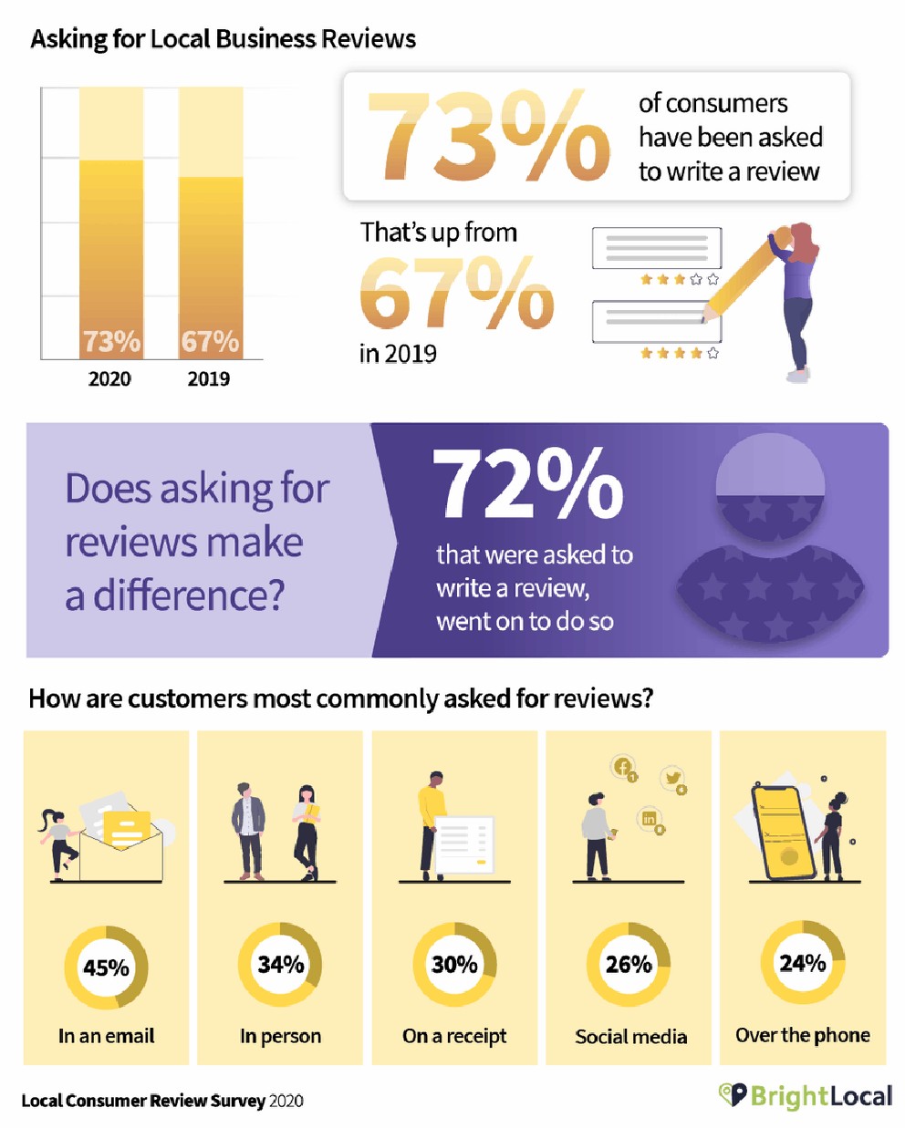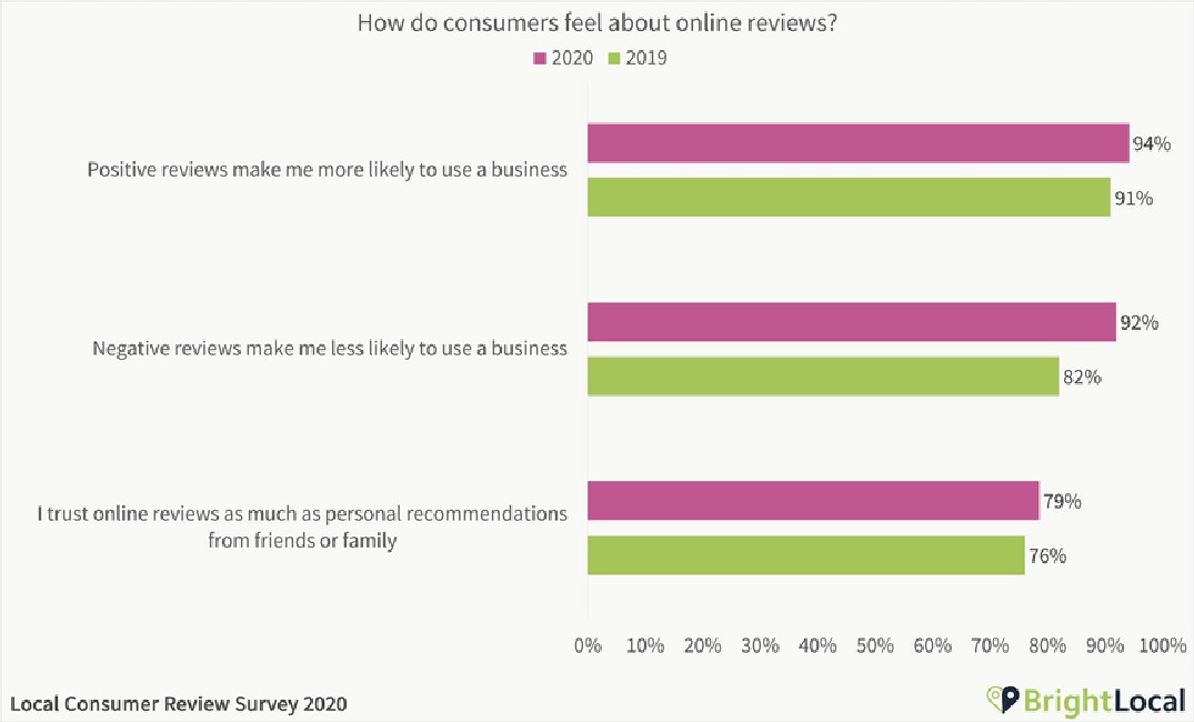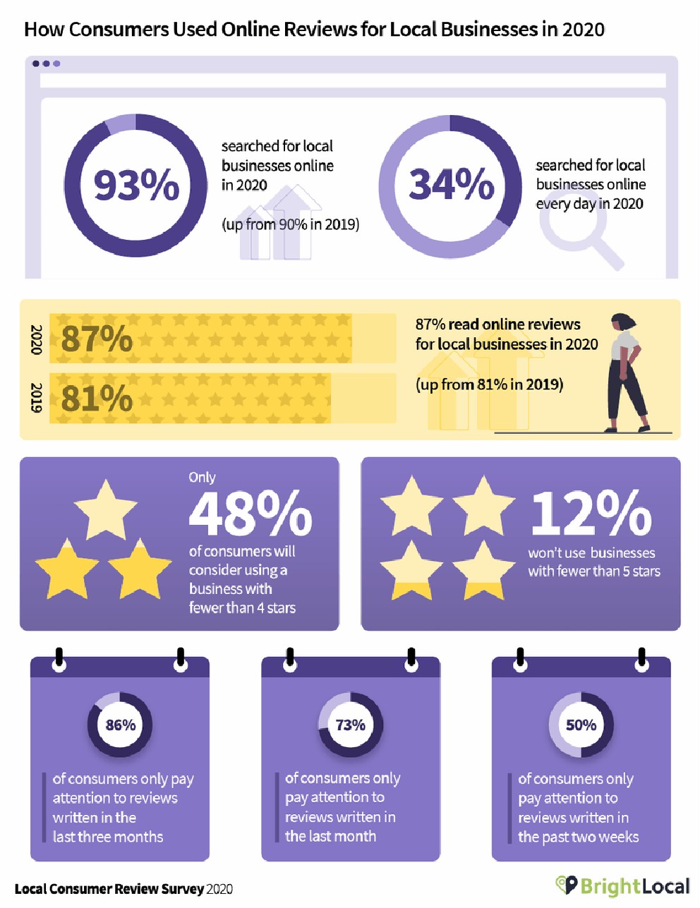 当然,2020年是与众不同的一年。除了通常的统计数据,包括星级评价、评论数量以及本地企业如何要求评论外,BrightLocal还询问了消费者Covid-19对在线评论和本地企业的影响。这些可以为不断变化的趋势提供背景信息,并帮助读者了解大流行对本地企业的影响。