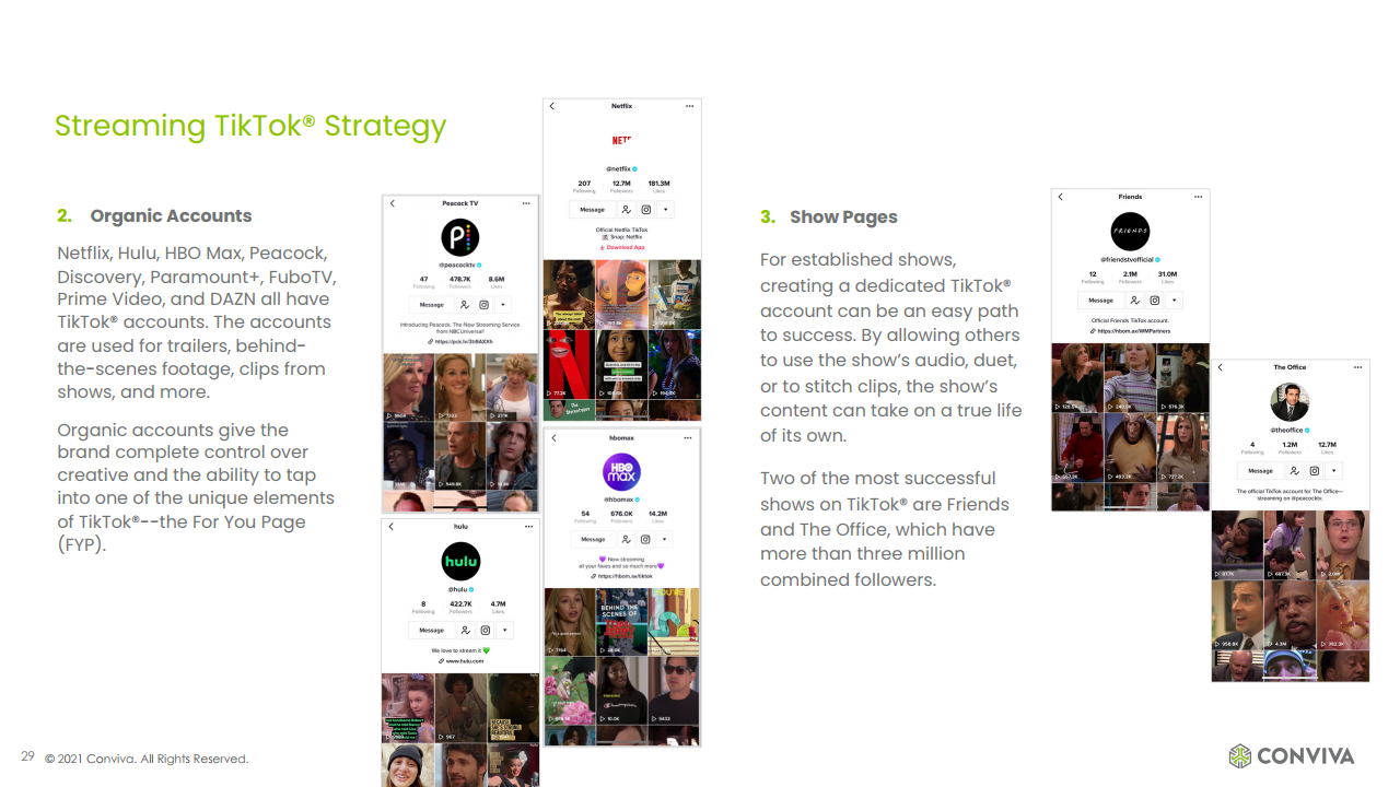 “ TikTok在过去的一年里爆发了,” Conviva战略副总裁尼克·西塞罗(Nick Cicero)在评论《TikTok基准和战略指南》时说。“发布一致、真实和优质内容的品牌已经崛起,在粉丝和参与度方面收获最大收益。总体而言,社交视频尤其是TikTok,将持续存在,因为它们为热切的粉丝和消费者提供了短暂的娱乐机会。因此,品牌必须迅速想出如何利用这一媒介,因为那些不这样做的人只会被抛弃。”