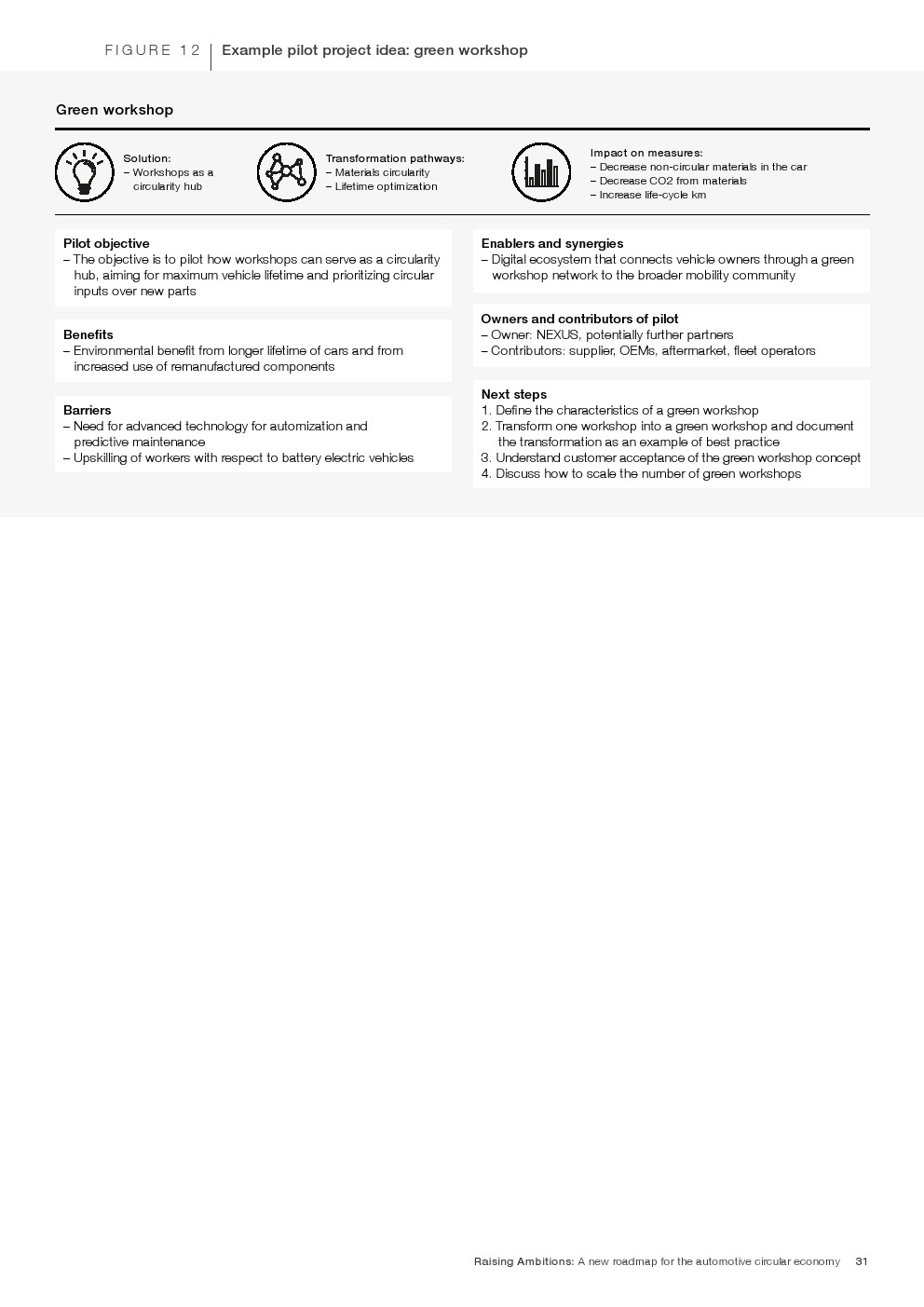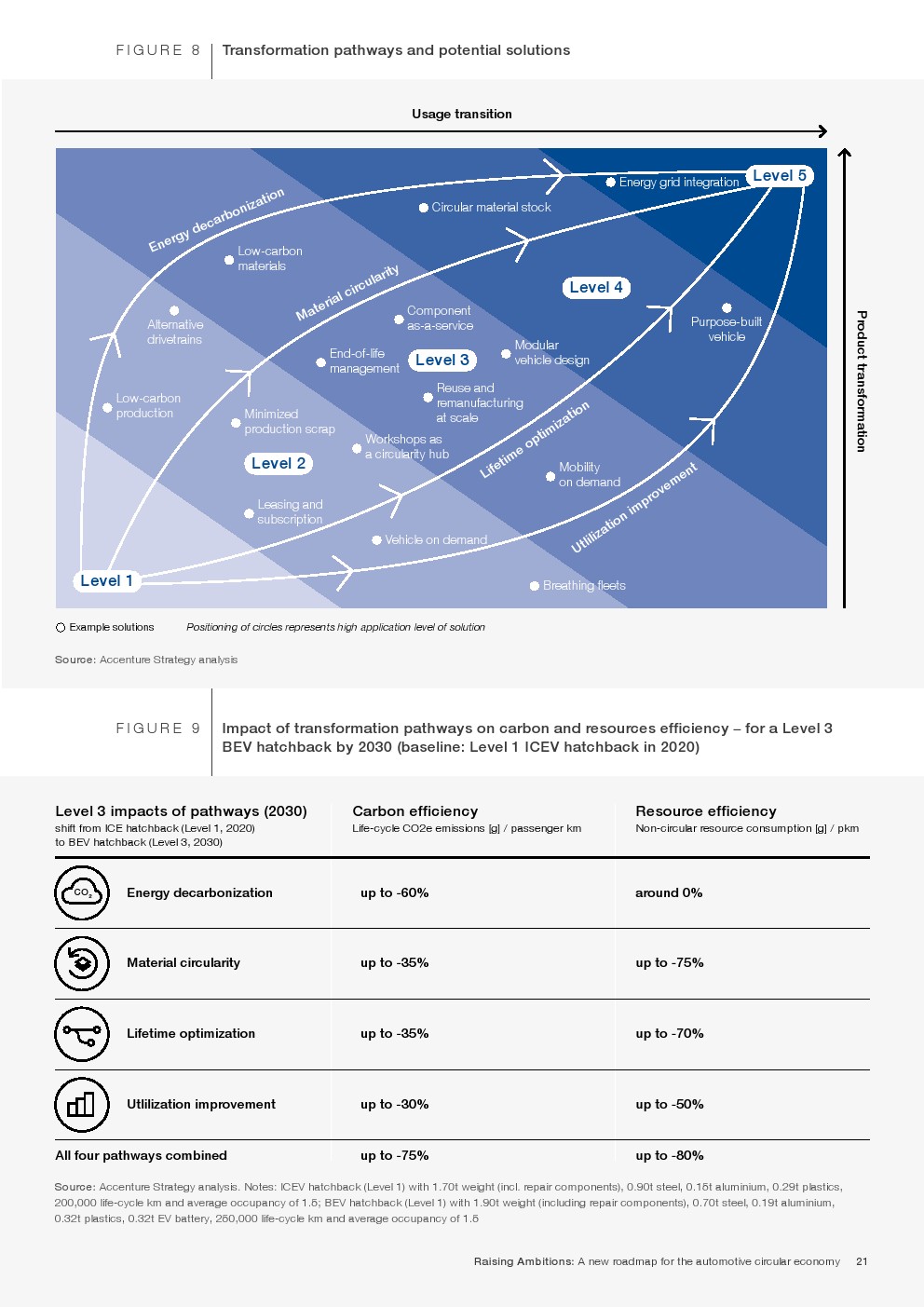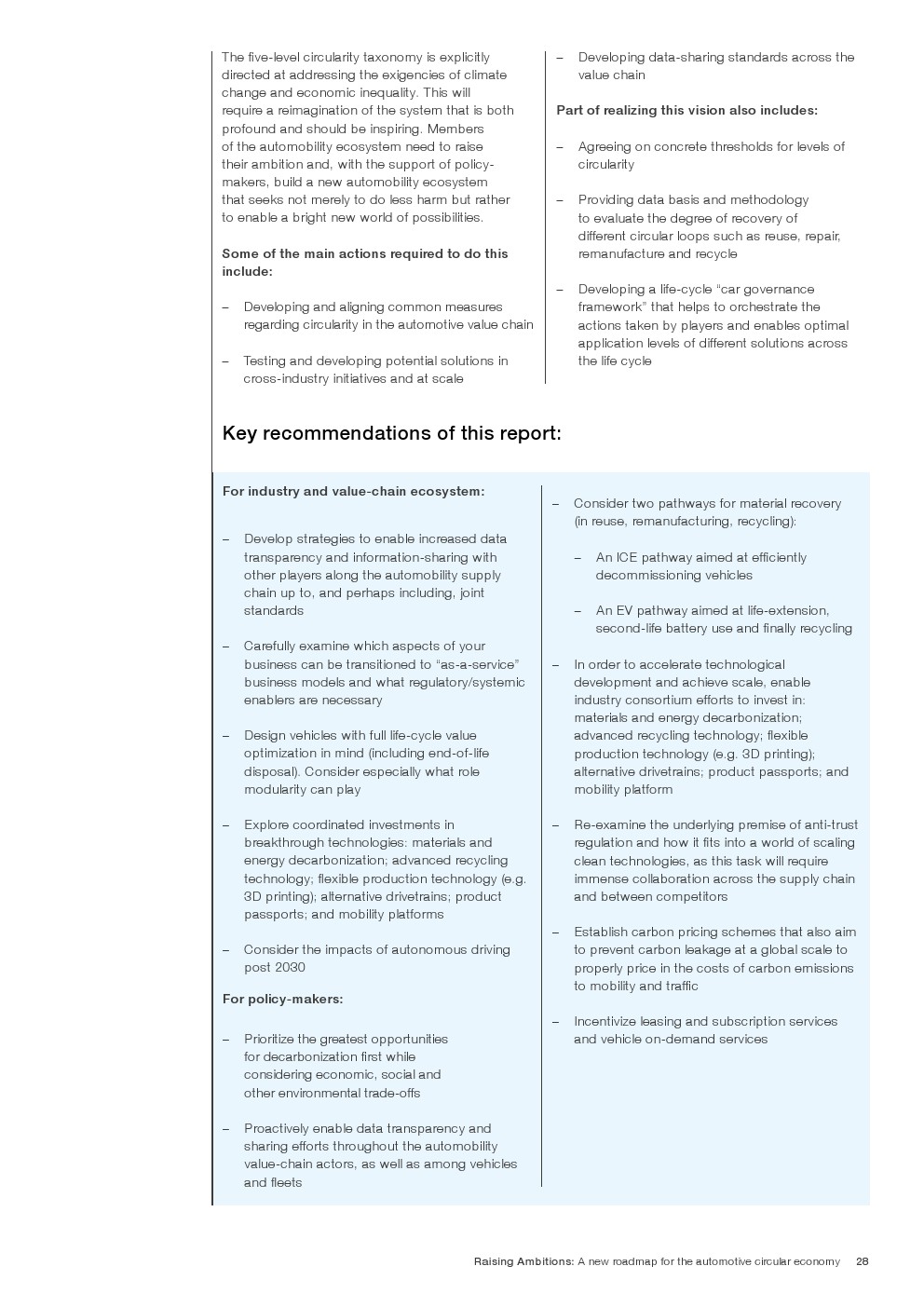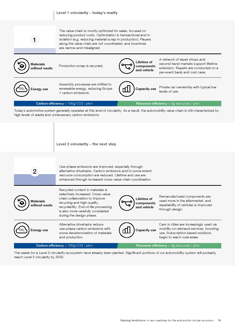 循环汽车将成为满足日益增长的需求的关键组成部分,同时将资源消耗和碳排放量降低到真正可持续的水平。根据这份报告,汽车生态系统的循环性可以通过四个关键的转化途径来实现: