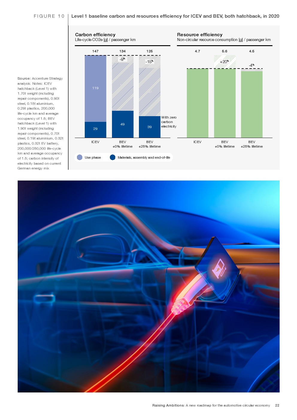 埃森哲、世界经济论坛和世界企业永续发展委员会的一份报告显示,在2030年前采用循环经济实践并加速汽车工业电气化,有可能将每英里碳排放量减少75%,非循环资源消耗量减少80%。
