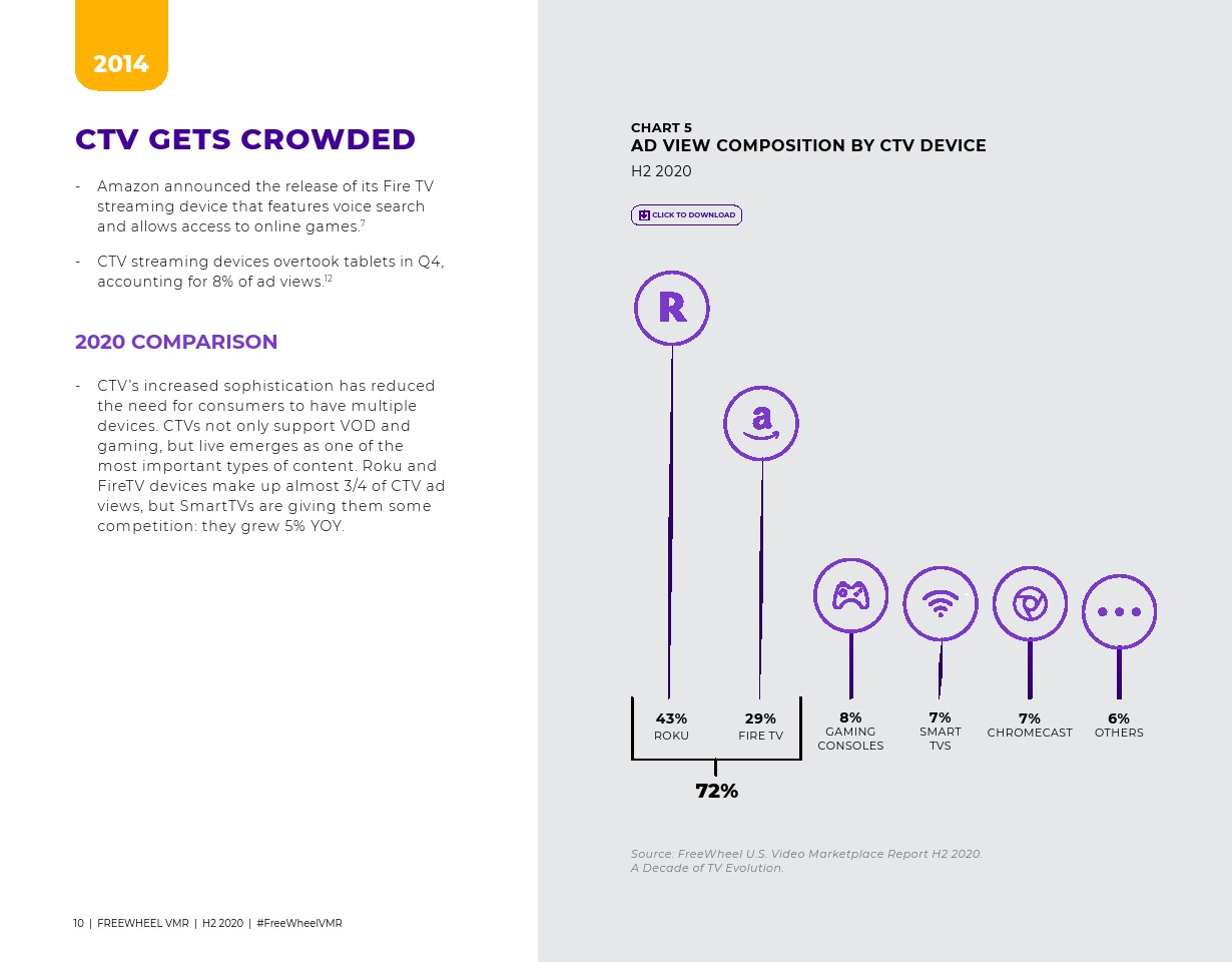 FreeWheel发布了“2020年下半年美国视频报告”。现在,我们看到了一个跨系统、内容和操作的碎片化的视频市场朝着集成的方向发展,其中包括内容聚合、系统简化和操作整合。2020年很可能成为数字视频和电视发展的拐点。