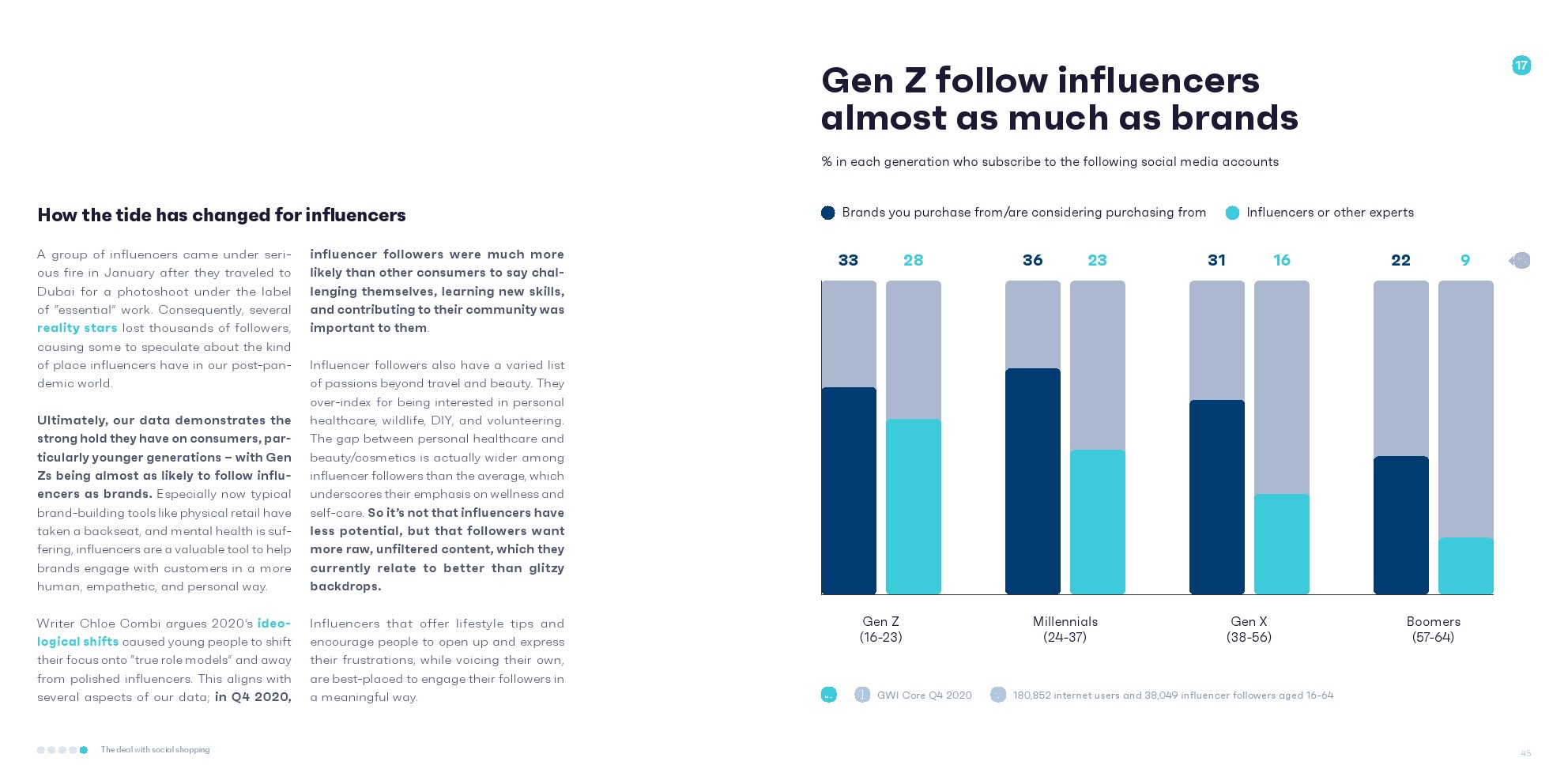 鉴于新冠大流行期间面临的挑战,GWI认为对更真实、更具代表性的意见领袖营销的需求明显增加。数据表明,他们对消费者,特别是年轻一代的吸引力强大。