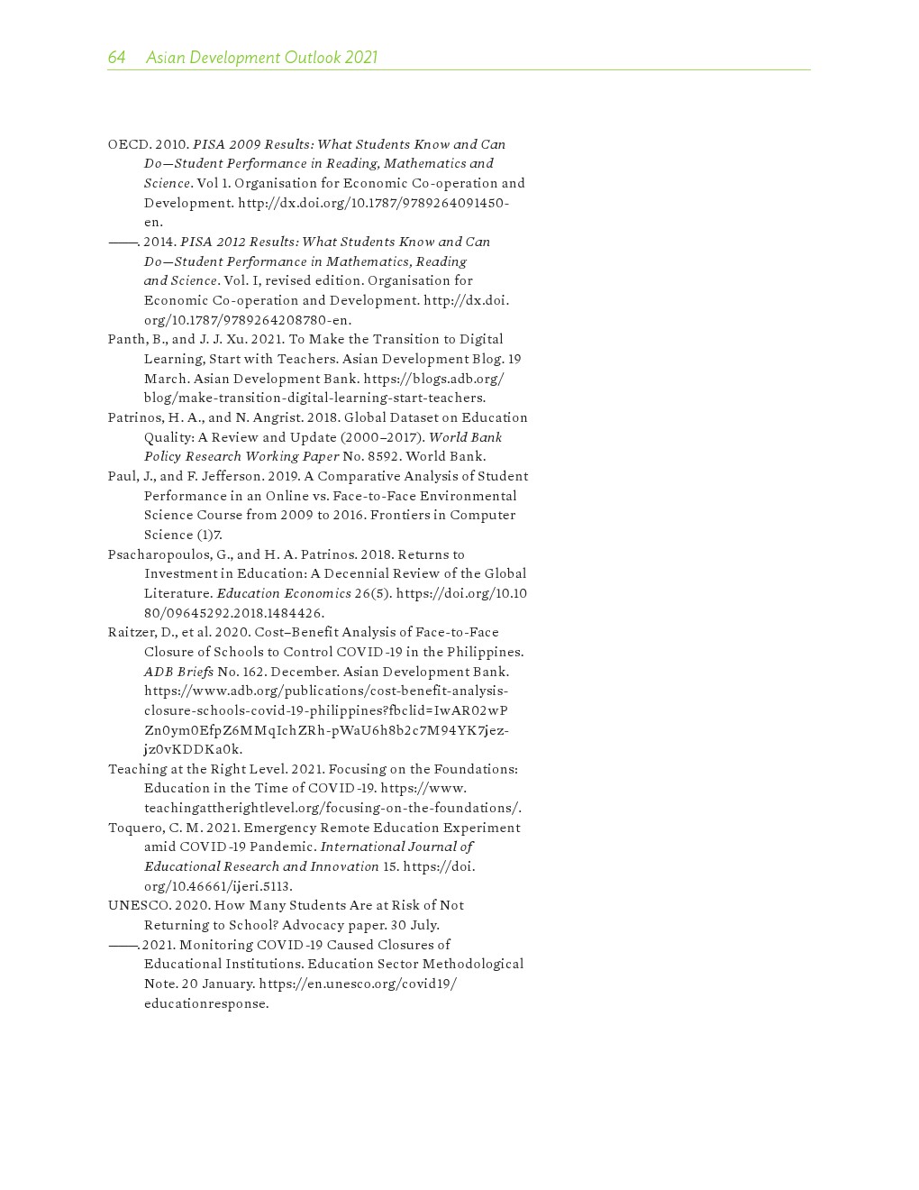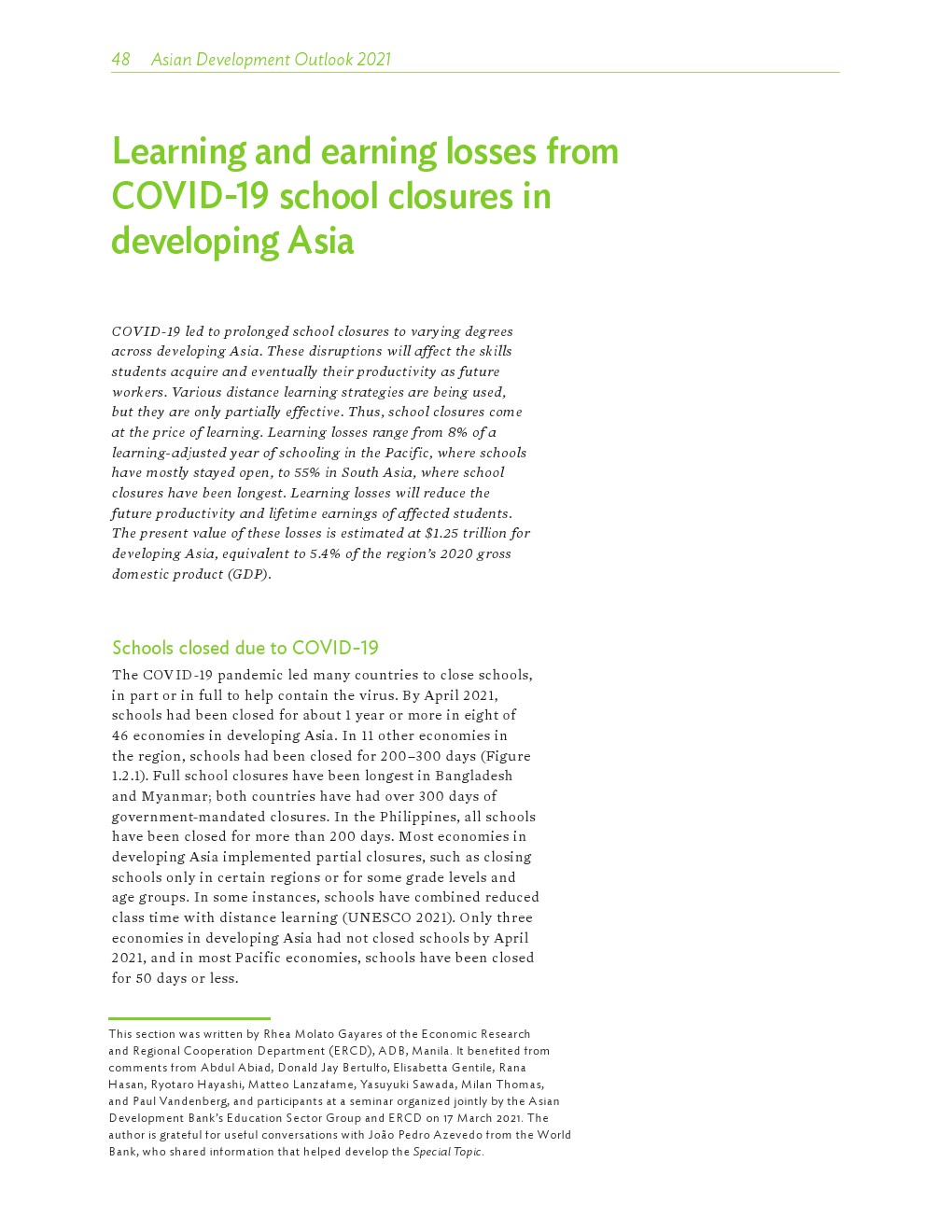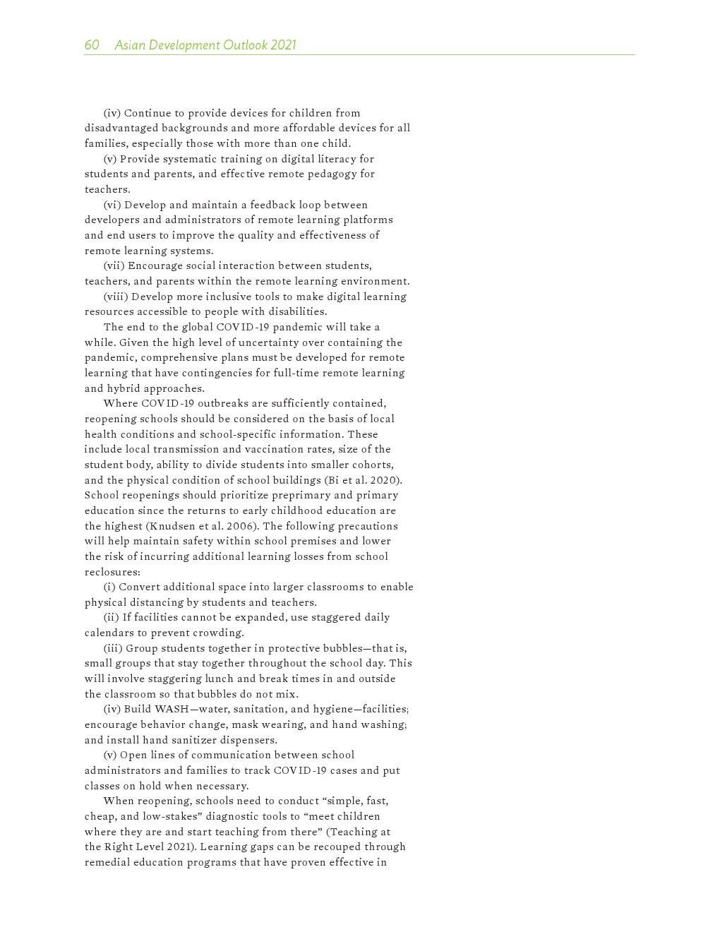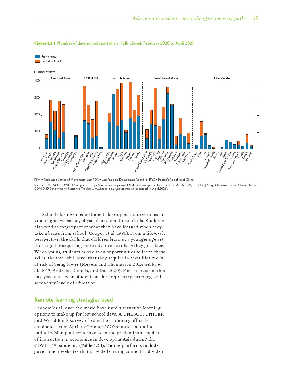 COVID-19大流行严重扰乱了教育。亚洲发展中国家有1/4的经济体不同程度地关闭了学校(200-300天),另有1/5的学校关闭了一年或更长时间。
