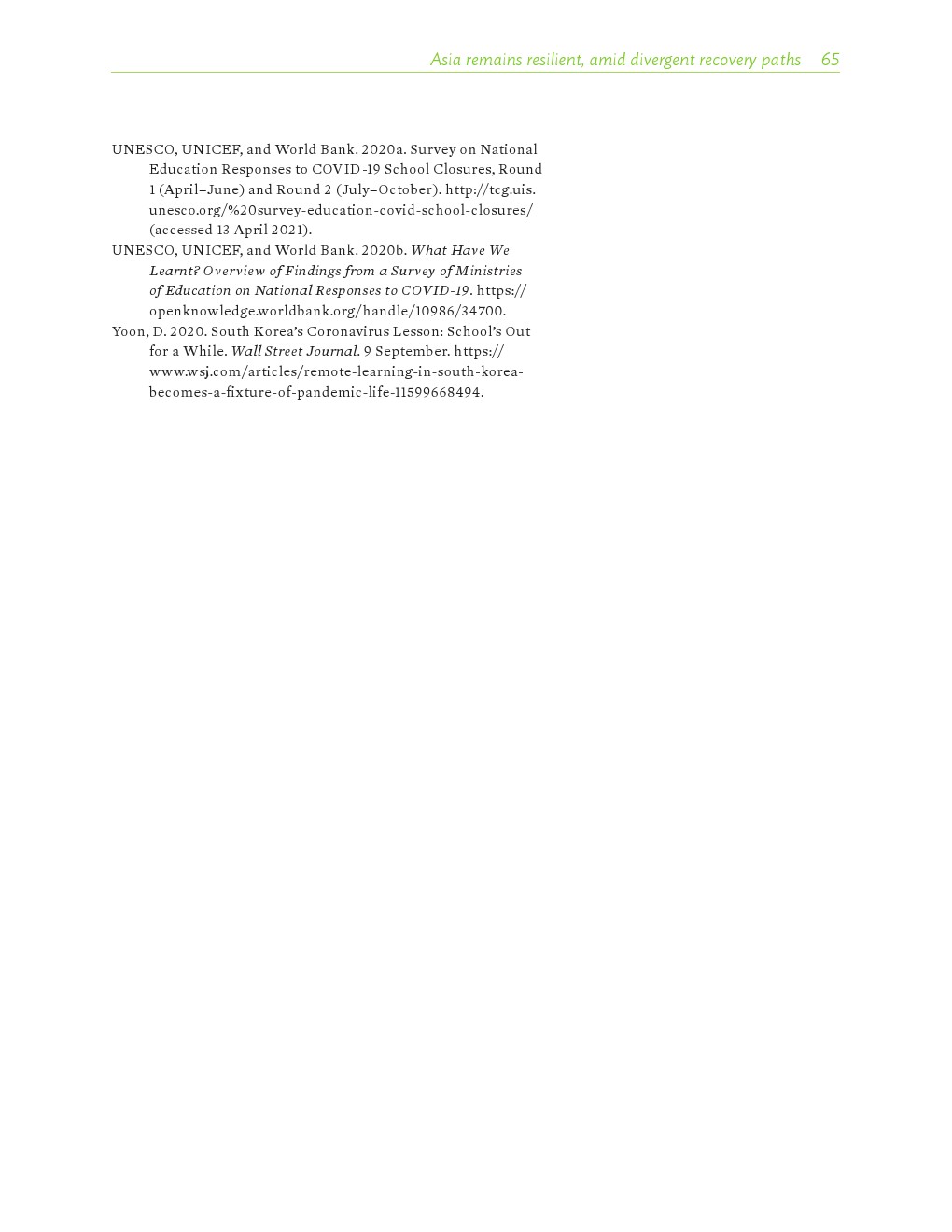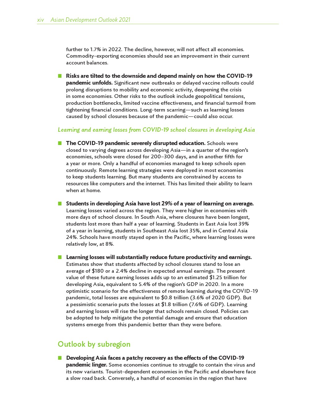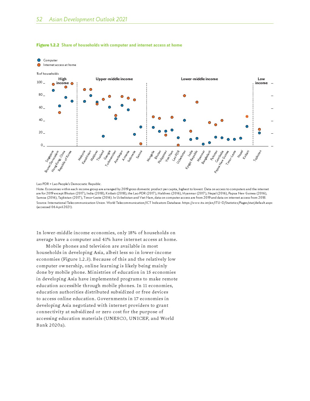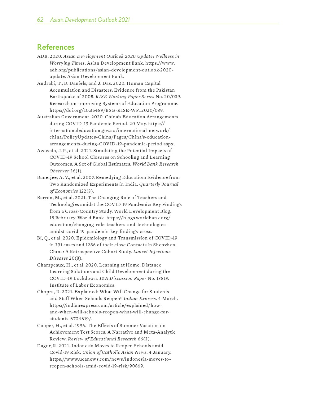 COVID-19大流行严重扰乱了教育。亚洲发展中国家有1/4的经济体不同程度地关闭了学校(200-300天),另有1/5的学校关闭了一年或更长时间。