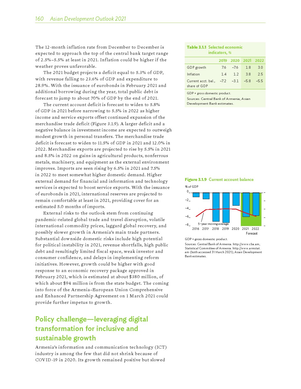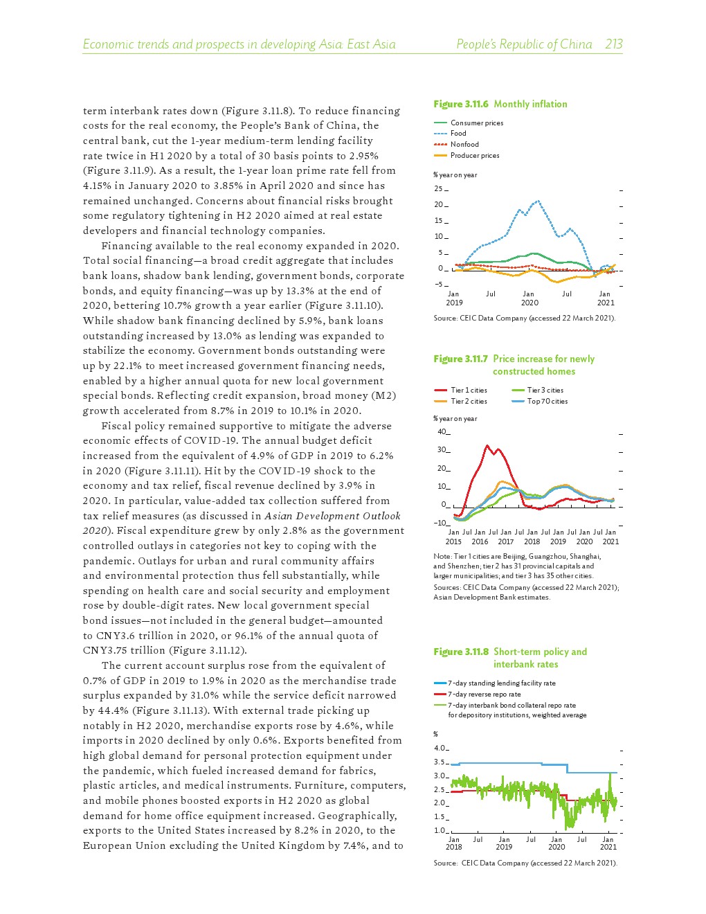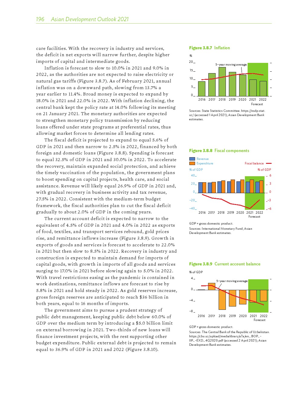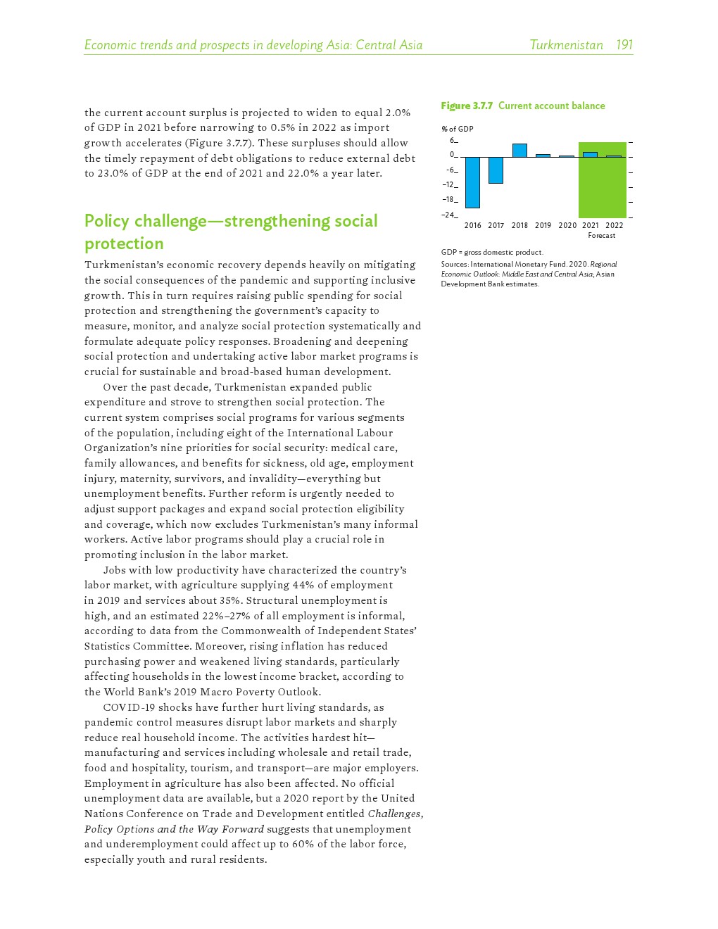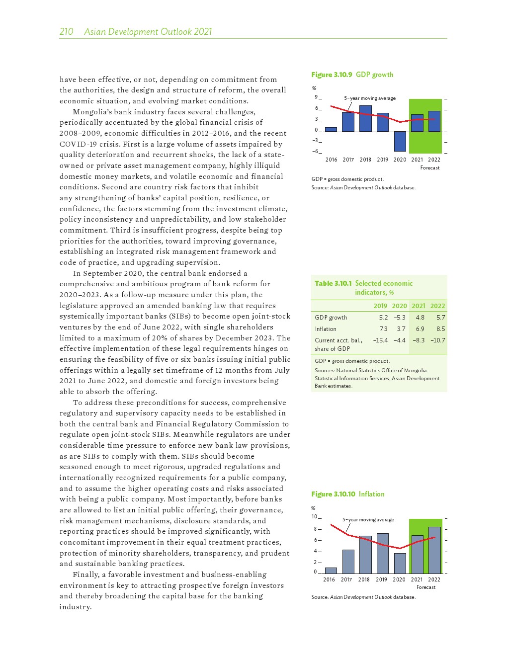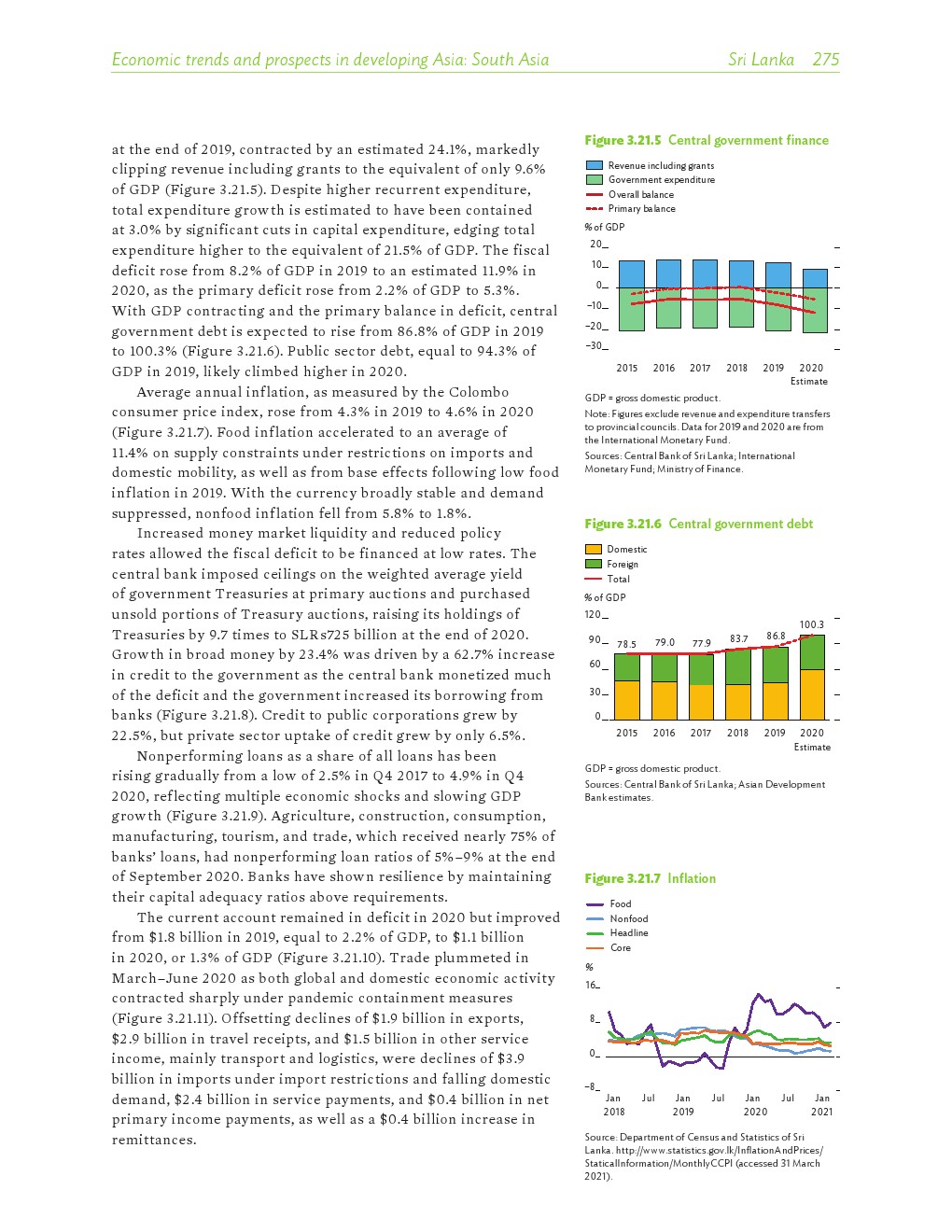 亚洲发展中地区的增长势头强劲,但新冠病毒的爆发表明,这种流行病仍然是一种威胁。即便如此,在全球健康复苏和疫苗研发的支持下,该地区的经济复苏仍在进行中。预计2021年该地区经济增长将反弹至7.3%,2022年将放缓至5.3%。不包括高收入新兴工业化经济体,预计今年和明年的经济增长率分别为7.7%和5.6%。2020年小幅下降之后,由于食品价格压力的缓解,预计2021年整体通胀率将降至2.3%,2022年物价将上涨2.7%。