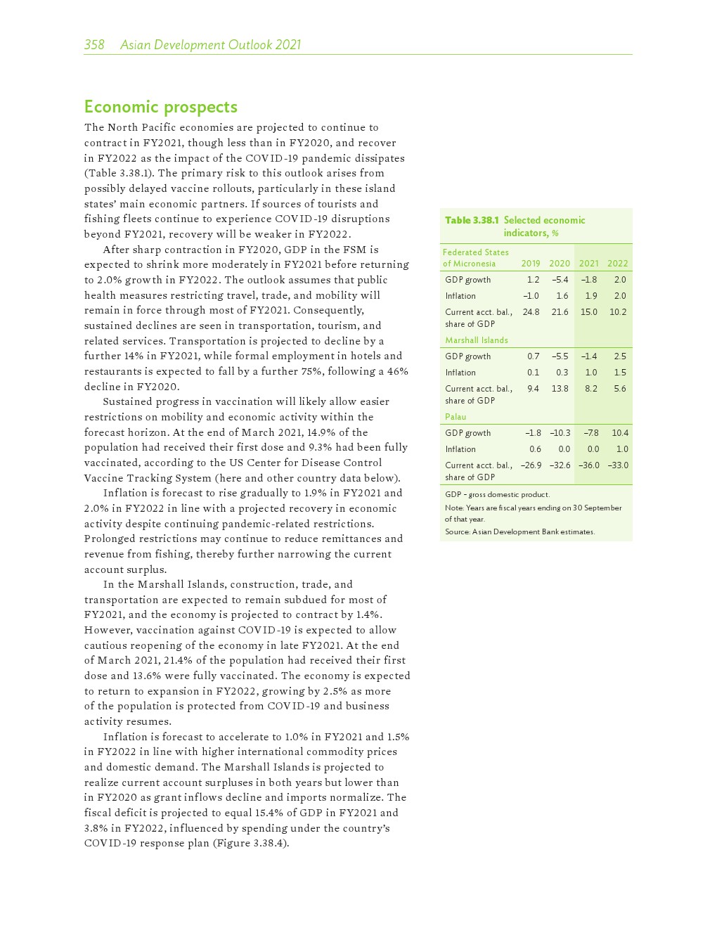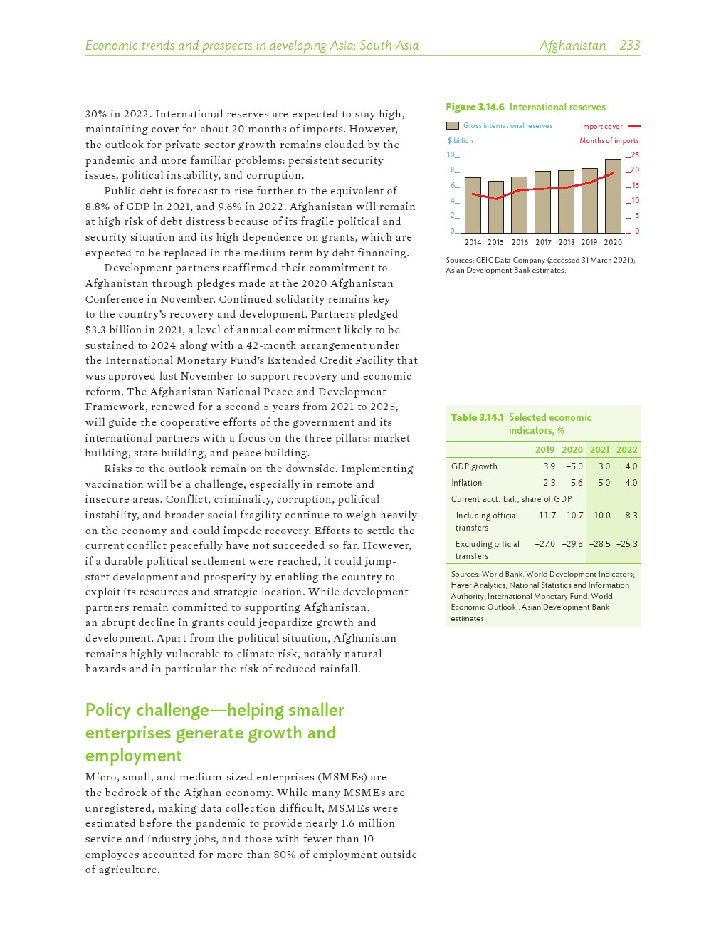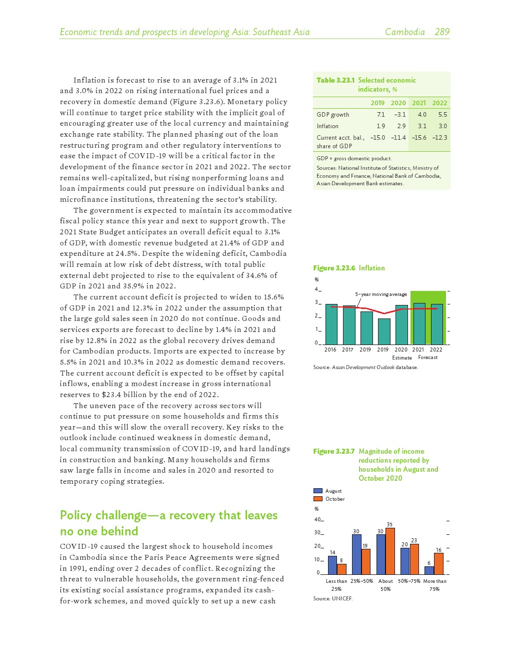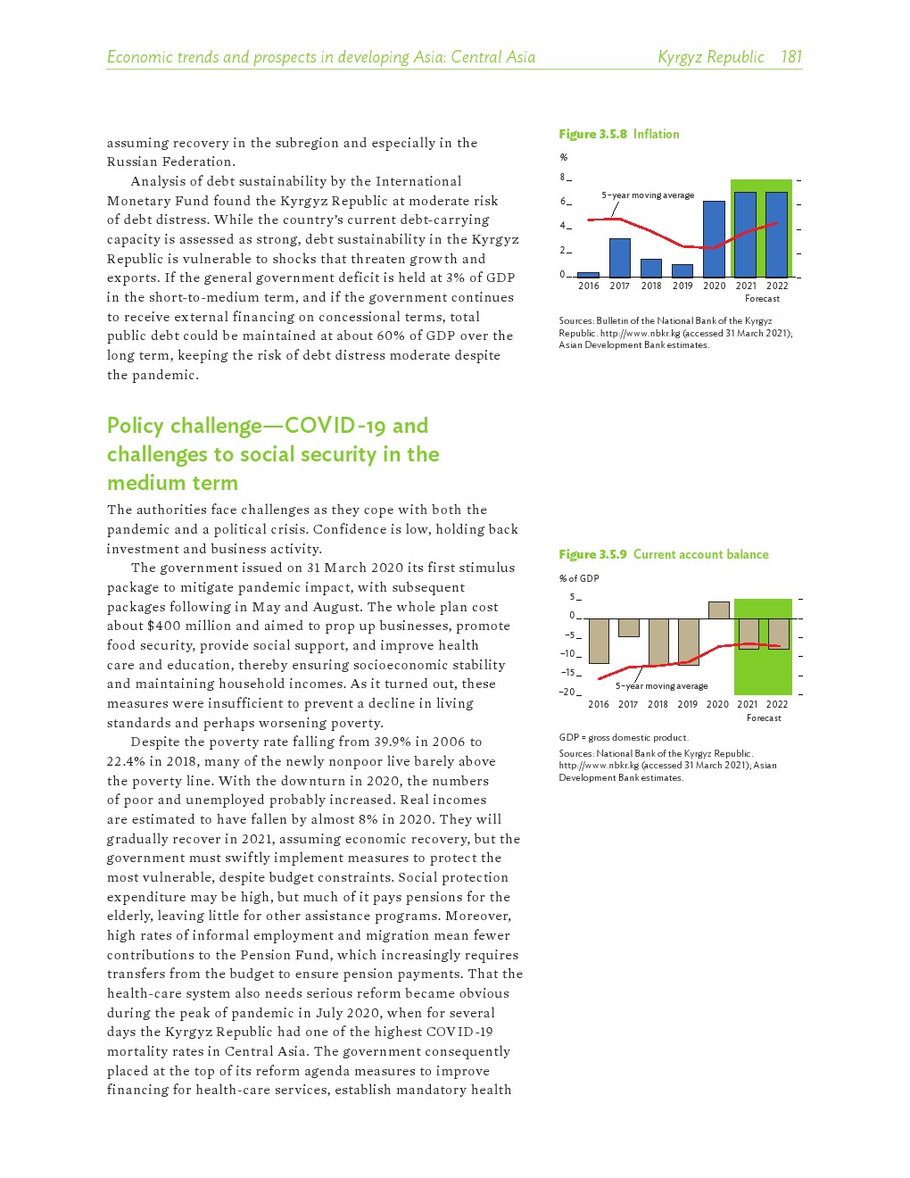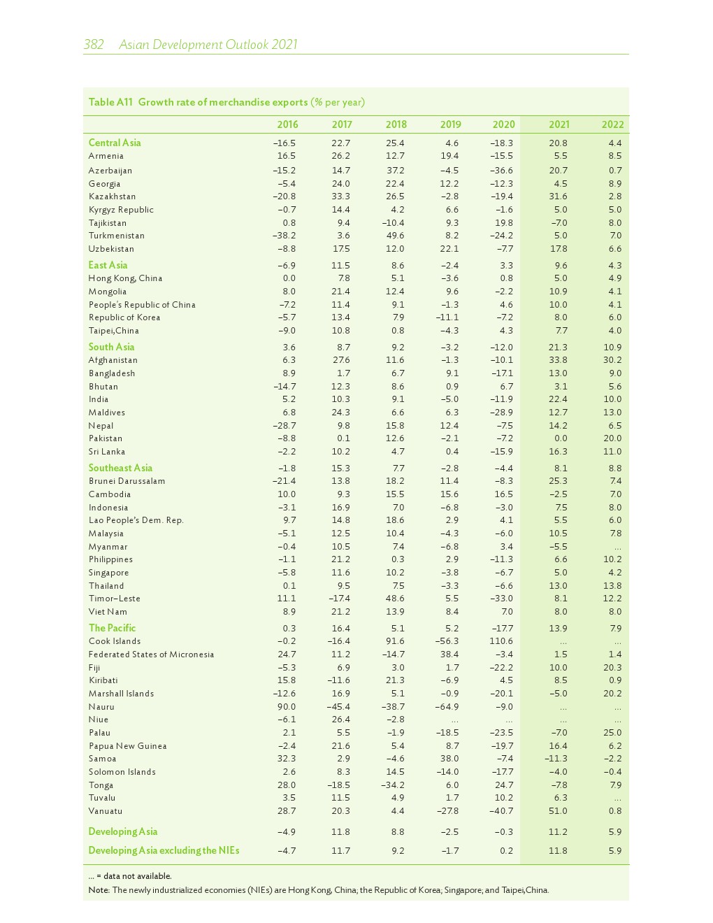 亚洲发展中地区的增长势头强劲,但新冠病毒的爆发表明,这种流行病仍然是一种威胁。即便如此,在全球健康复苏和疫苗研发的支持下,该地区的经济复苏仍在进行中。预计2021年该地区经济增长将反弹至7.3%,2022年将放缓至5.3%。不包括高收入新兴工业化经济体,预计今年和明年的经济增长率分别为7.7%和5.6%。2020年小幅下降之后,由于食品价格压力的缓解,预计2021年整体通胀率将降至2.3%,2022年物价将上涨2.7%。