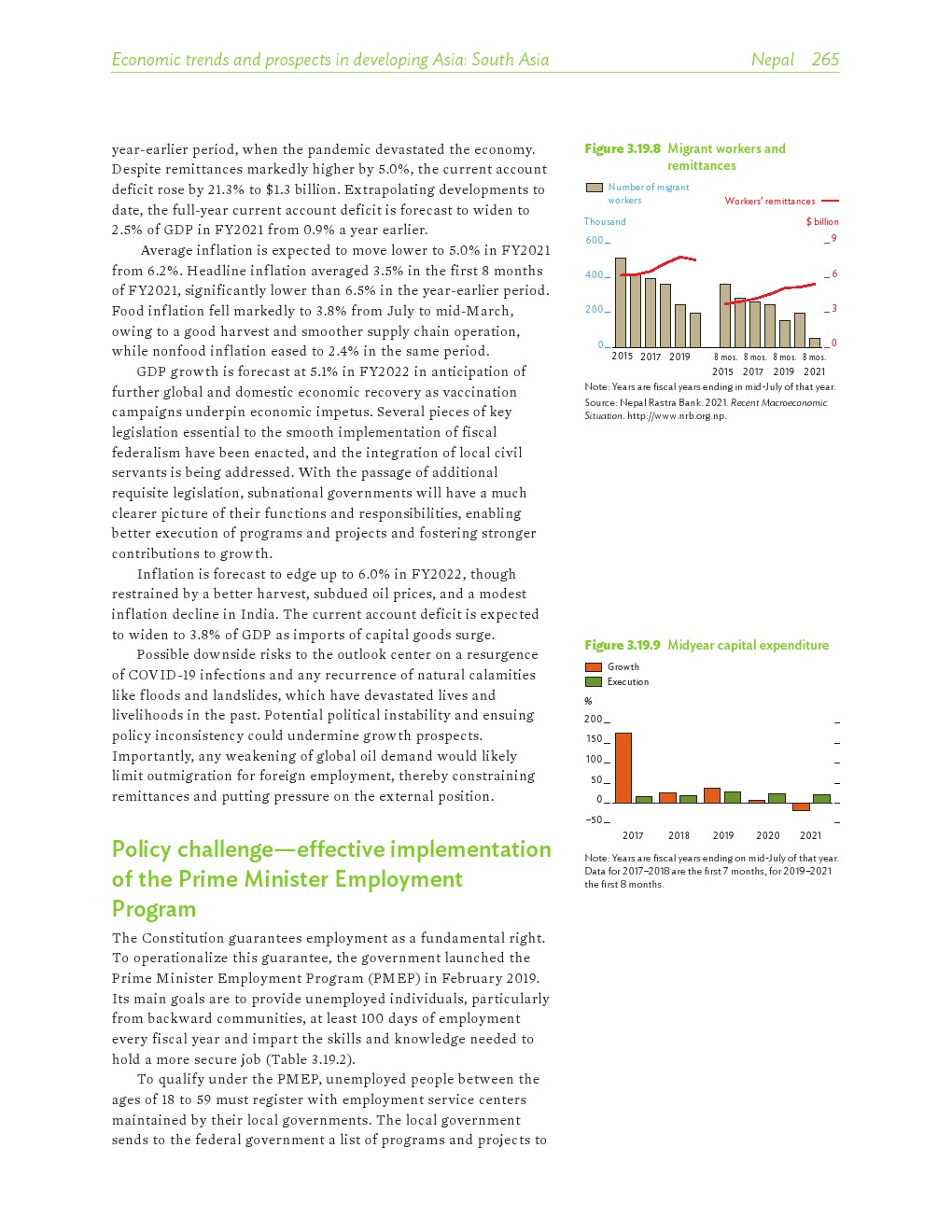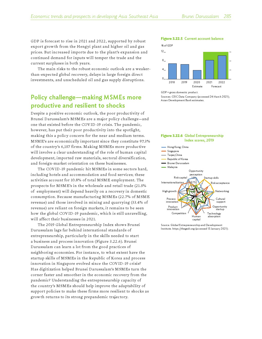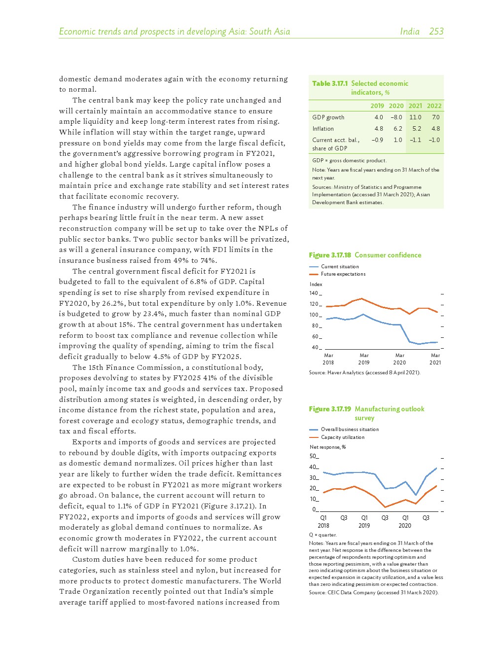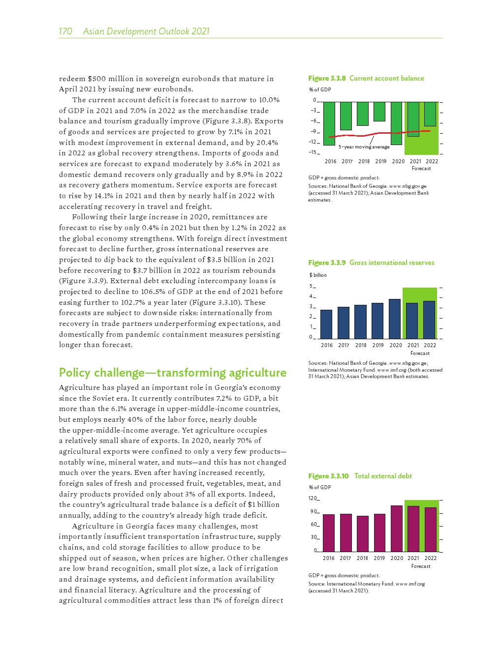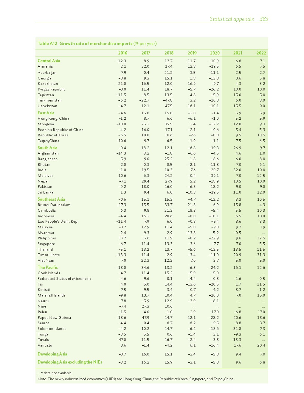 亚洲发展中地区的增长势头强劲,但新冠病毒的爆发表明,这种流行病仍然是一种威胁。即便如此,在全球健康复苏和疫苗研发的支持下,该地区的经济复苏仍在进行中。预计2021年该地区经济增长将反弹至7.3%,2022年将放缓至5.3%。不包括高收入新兴工业化经济体,预计今年和明年的经济增长率分别为7.7%和5.6%。2020年小幅下降之后,由于食品价格压力的缓解,预计2021年整体通胀率将降至2.3%,2022年物价将上涨2.7%。