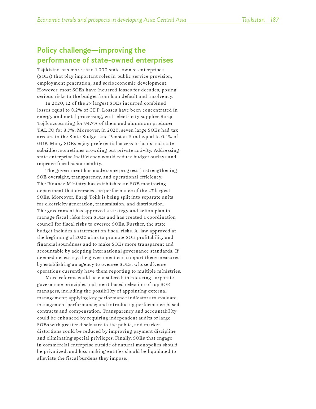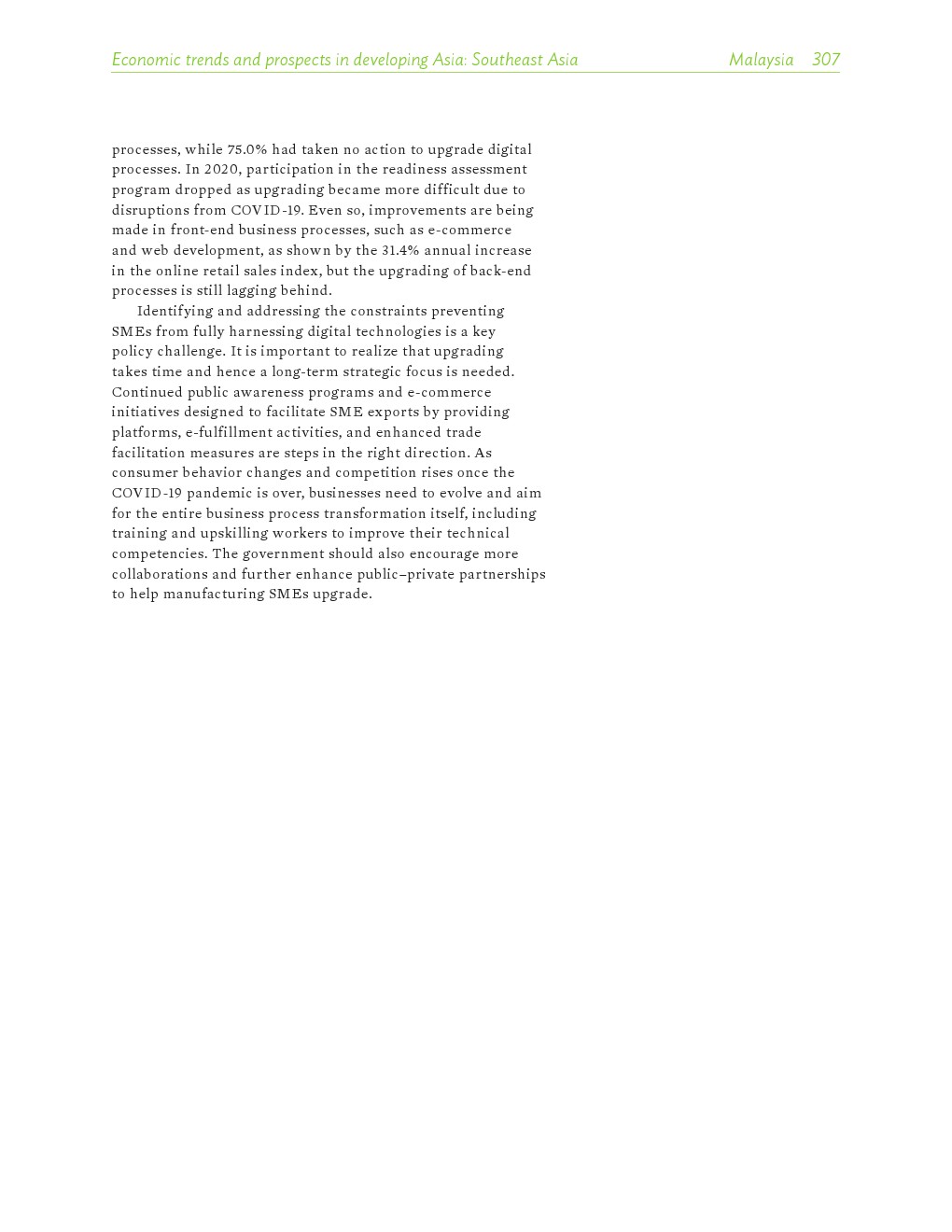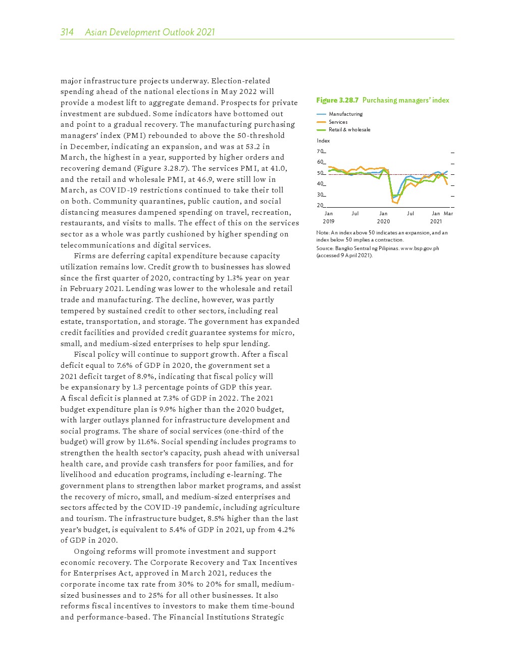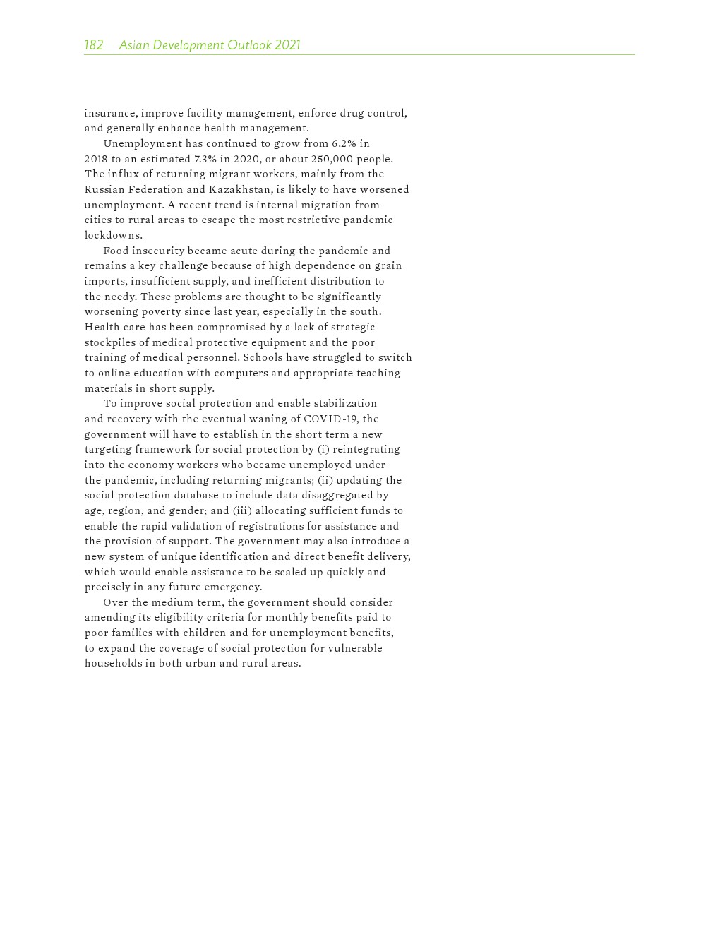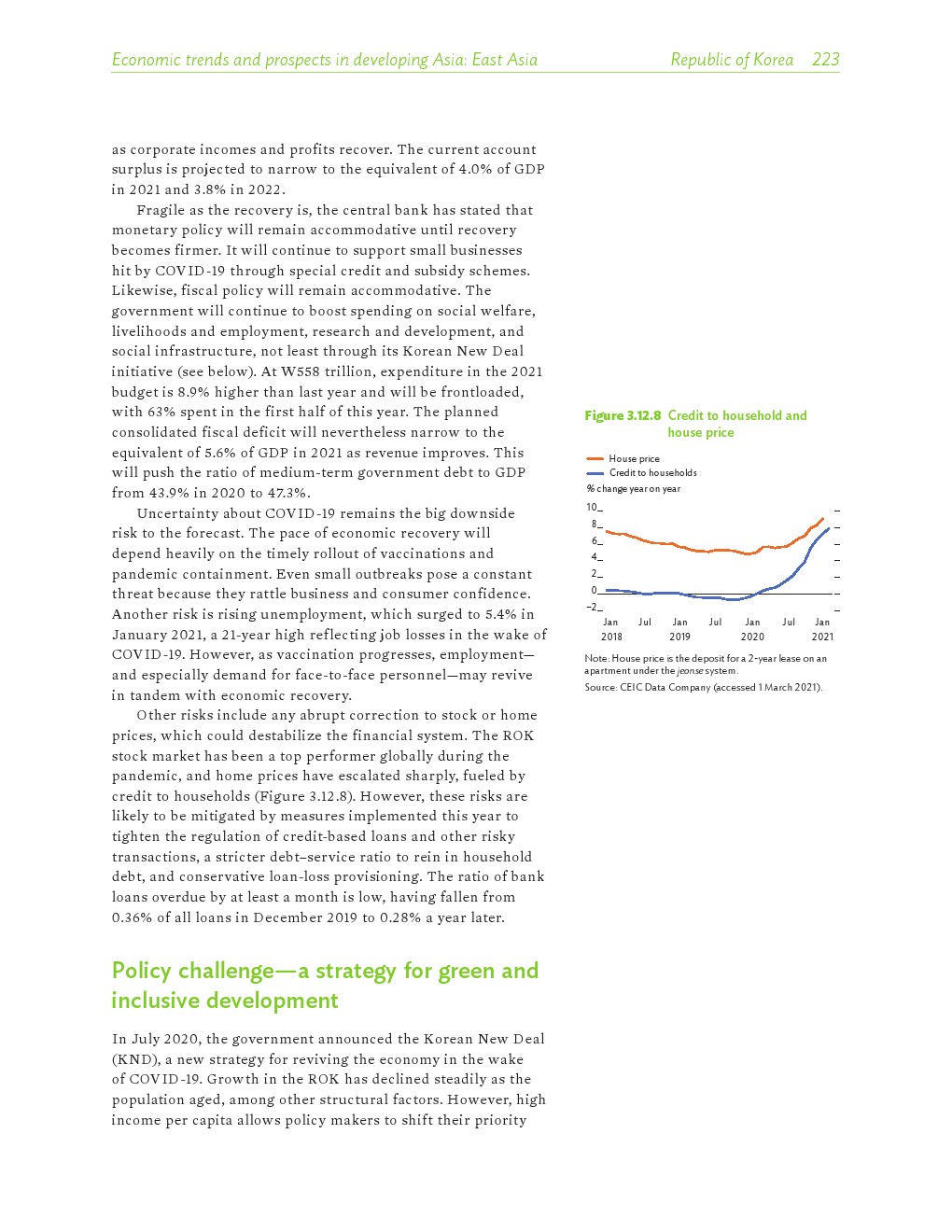 亚洲发展中地区的增长势头强劲,但新冠病毒的爆发表明,这种流行病仍然是一种威胁。即便如此,在全球健康复苏和疫苗研发的支持下,该地区的经济复苏仍在进行中。预计2021年该地区经济增长将反弹至7.3%,2022年将放缓至5.3%。不包括高收入新兴工业化经济体,预计今年和明年的经济增长率分别为7.7%和5.6%。2020年小幅下降之后,由于食品价格压力的缓解,预计2021年整体通胀率将降至2.3%,2022年物价将上涨2.7%。