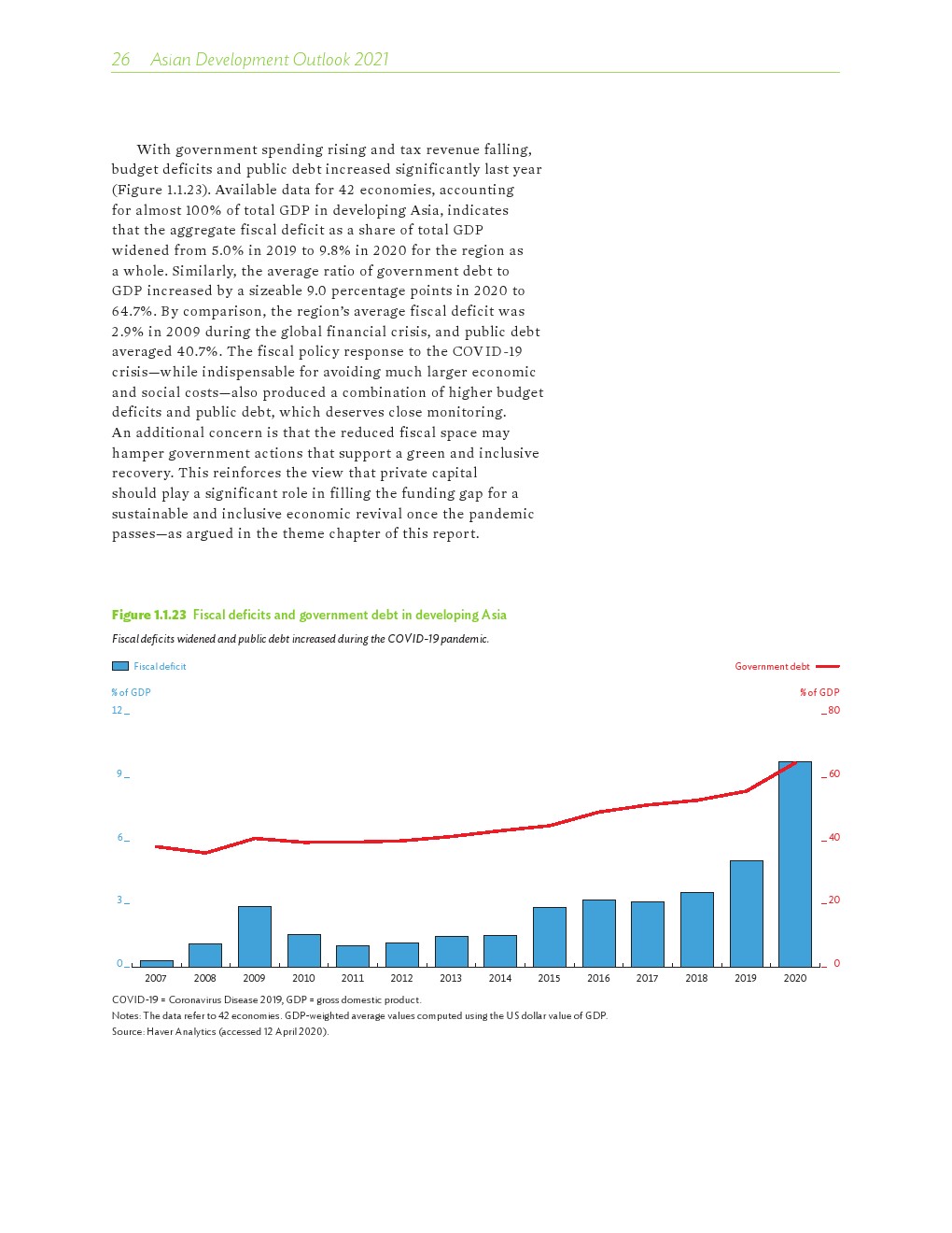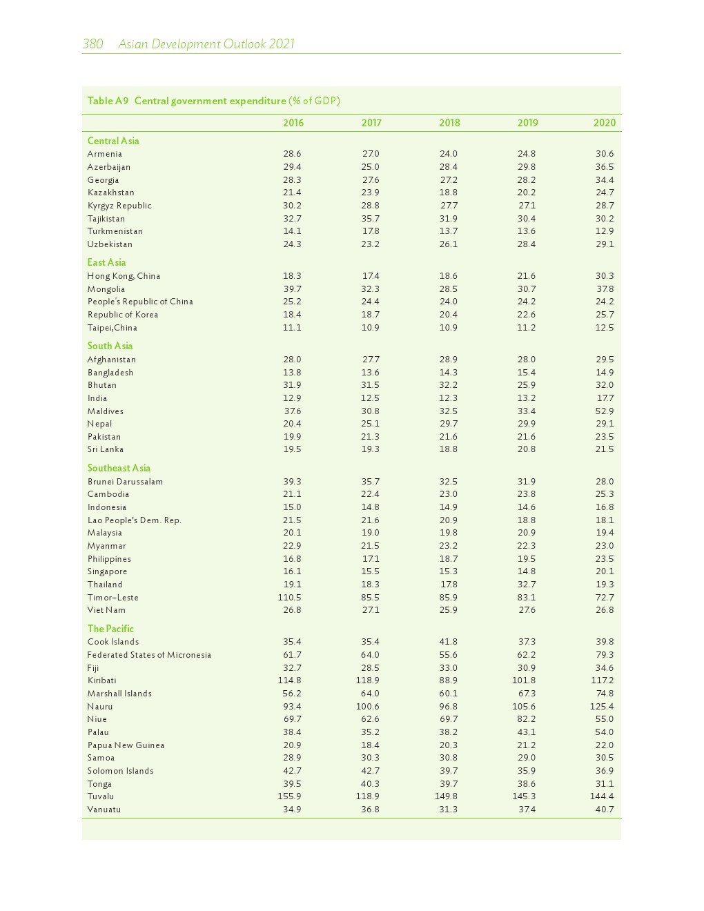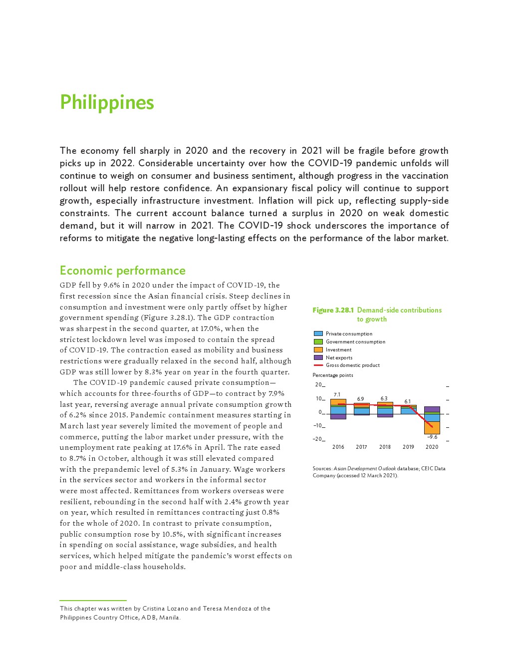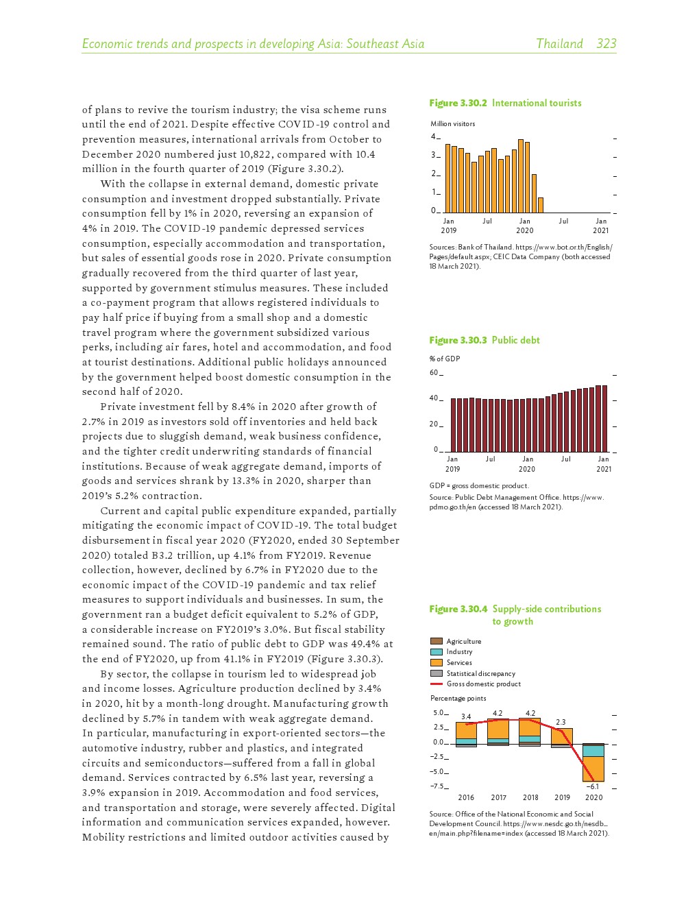 2020年发展中的亚洲经济各有不同,但总体萎缩了0.2%。在印度国内生产总值(GDP)下降8%的背景下,南亚出现了最大规模的萎缩。东南亚经济也大幅萎缩,菲律宾和泰国分别下滑了9.6%和6.1%。受中国经济快速反弹的推动,2020年东亚逆势实现正增长。