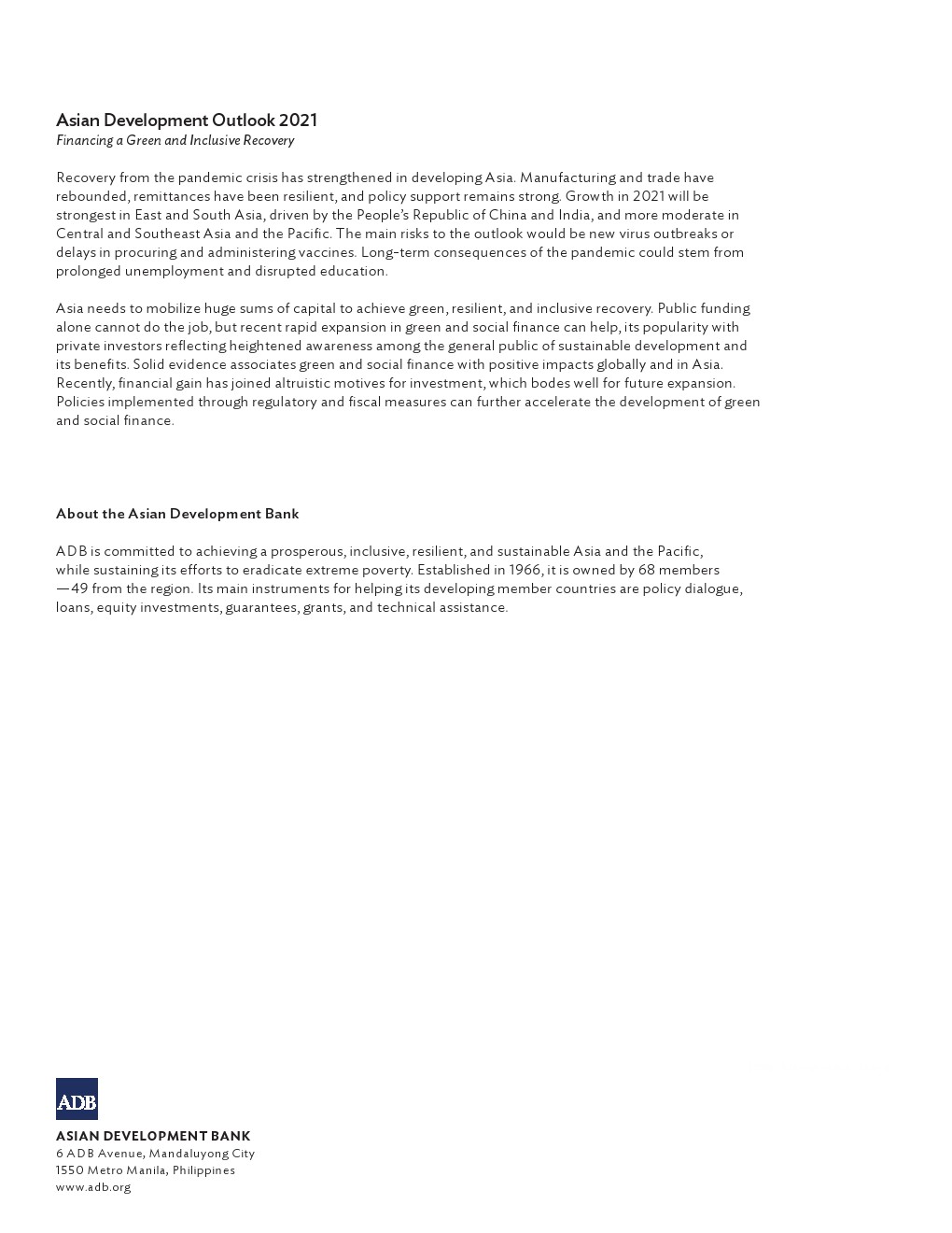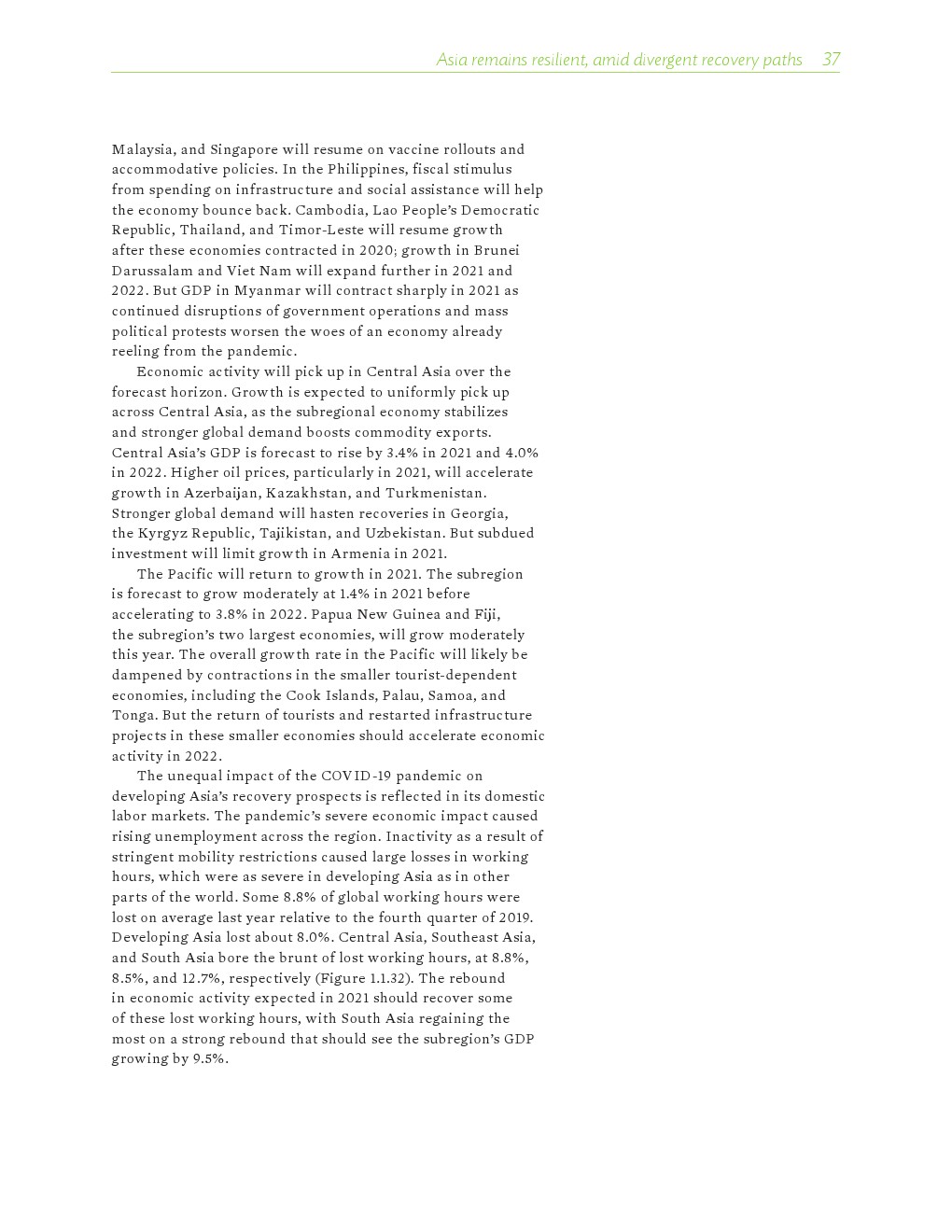 亚洲开发银行发布了新报告“2021年亚洲发展展望”。在不同的复苏道路上,亚洲依然保持着弹性。