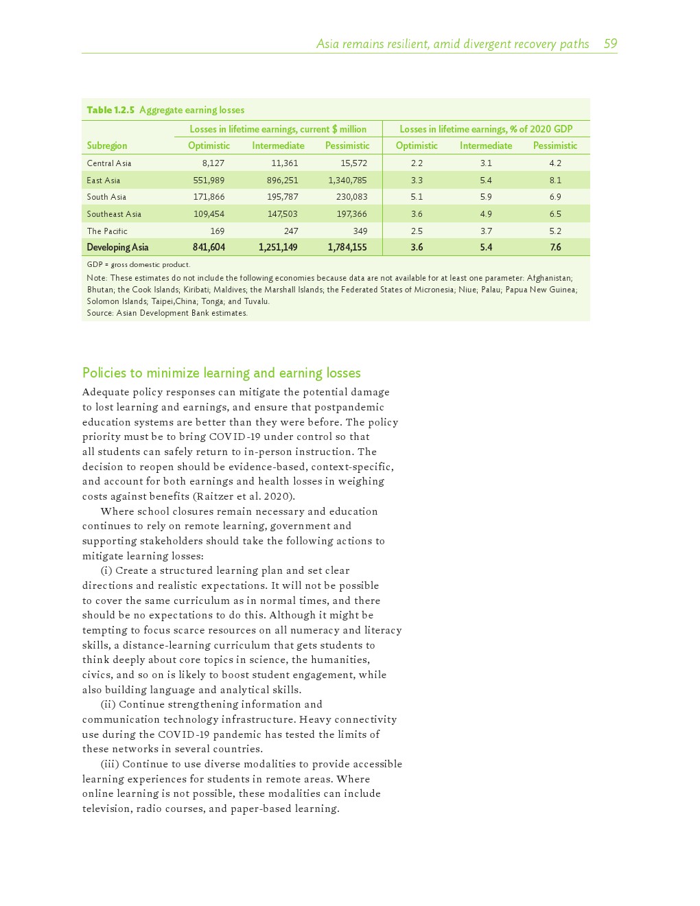 亚洲发展中国家学校关闭造成的学习和收入损失