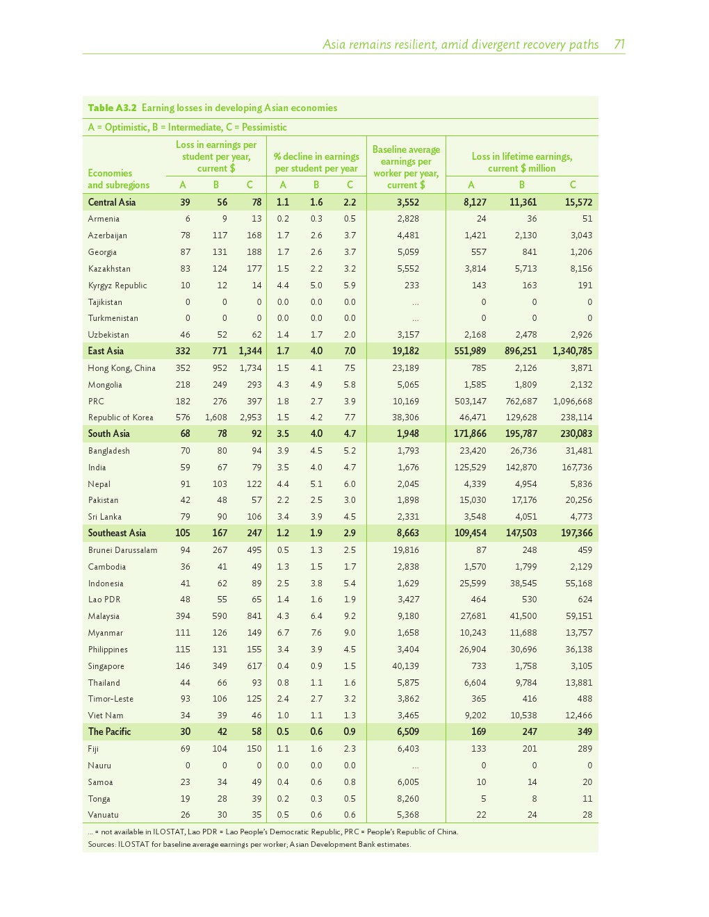 亚洲发展中国家的学生平均一年的学习时间减少了29%。东亚学生一年的学习时间损失了39%,东南亚的学生损失了35%,中亚的学生损失了24%,太平洋地区的学习时间损失8%。