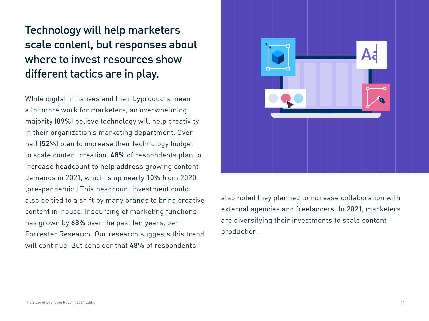 73%的营销人员原本打算在2020年创造更多的内容以跟上需求。72%的受访者相信他们今年能够实现这样的目标。为此,他们将增加员工人数(48%)或调整客户和合作伙伴关系(45%)。