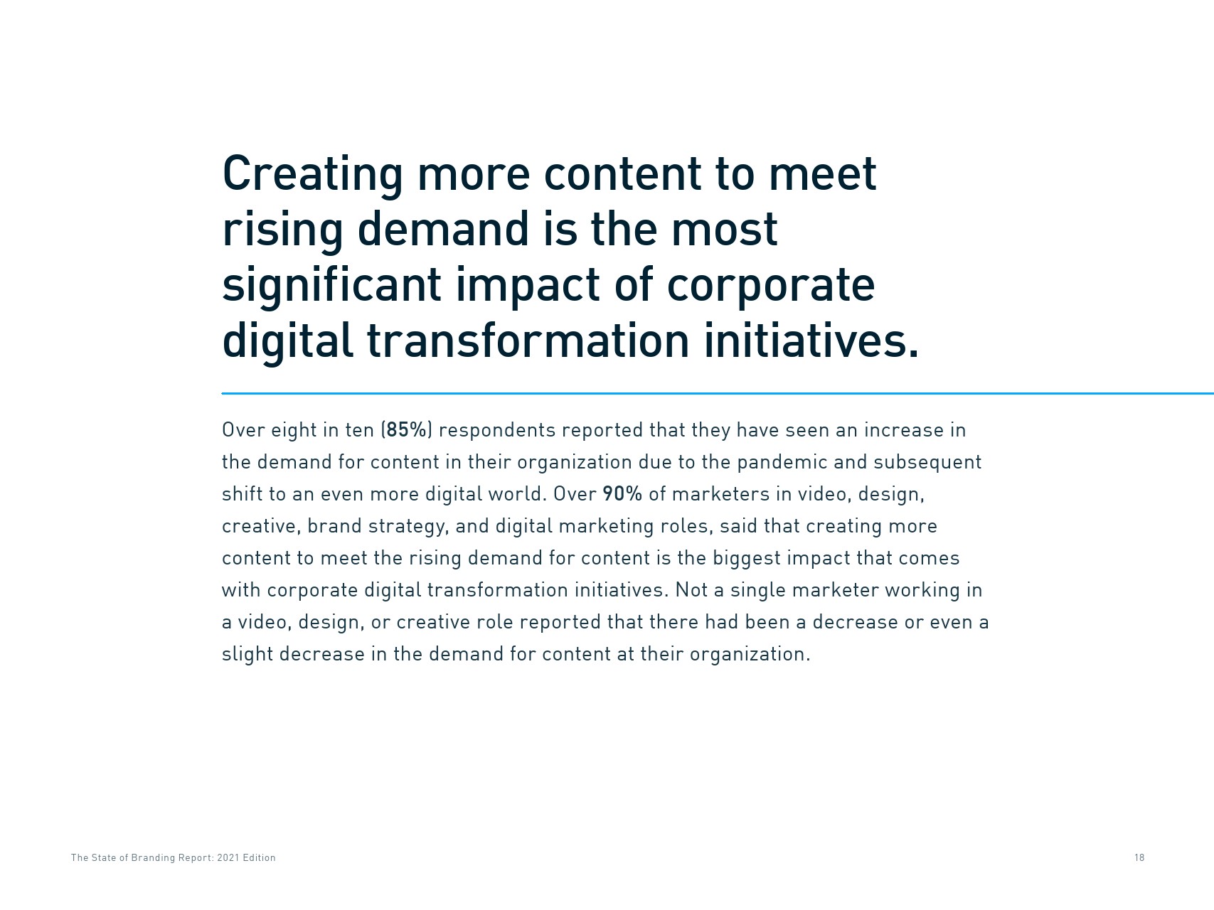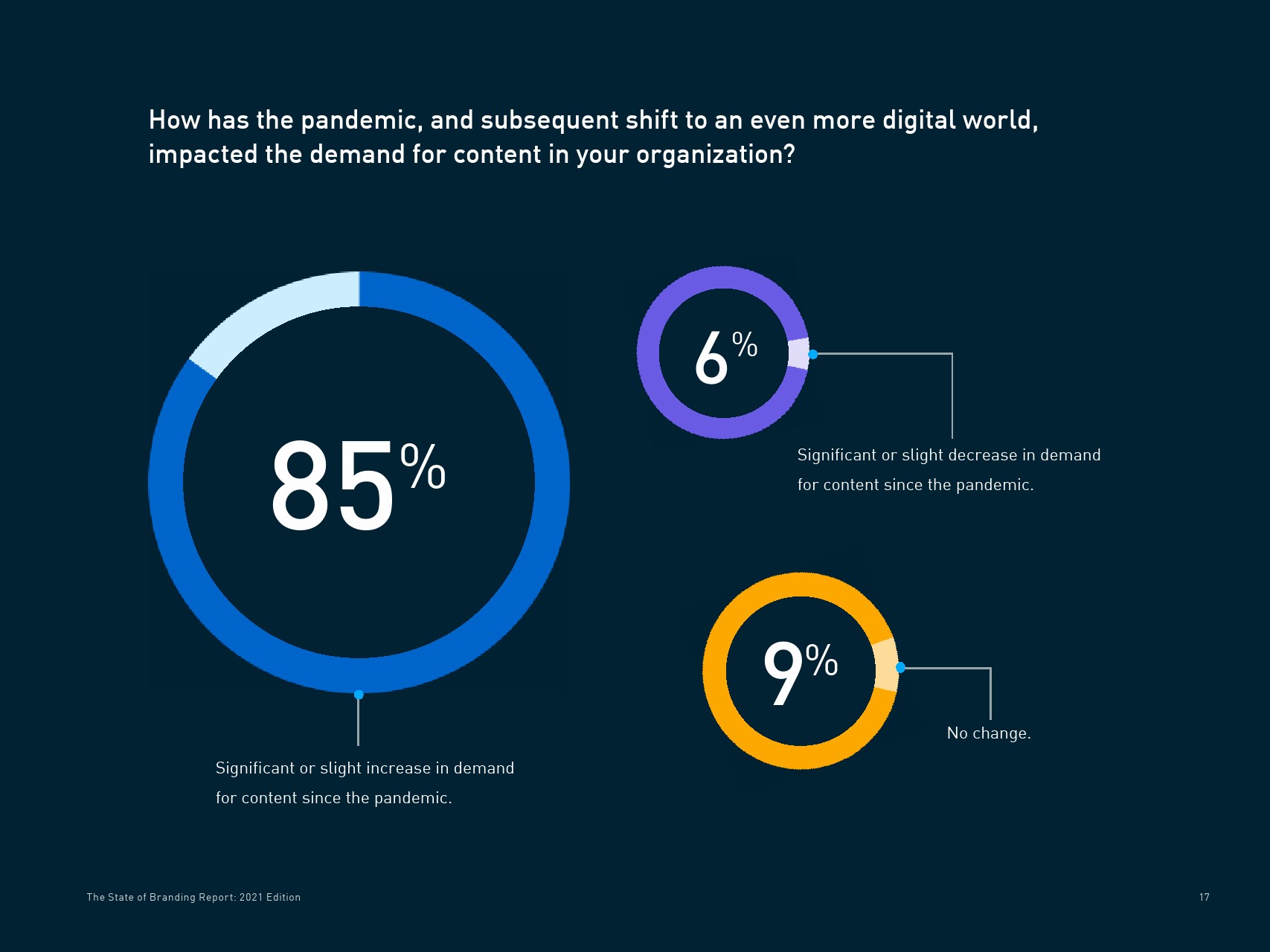大流行迫使许多营销人员加速数字营销转型。大流行以及由此带来的数字营销导致内容需求增长,85%的受访者表示自新冠大流行以来对内容的需求出现了显著或轻微的增长。