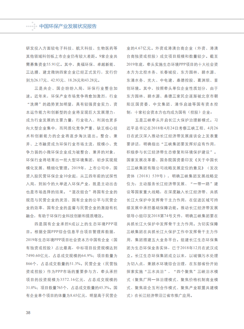 《报告》显示,2019年全国环保产业营业收入约17800亿元,较2018年增长约11.3%,其中环境服务营业收入约11200亿元,同比增长约23.2%。