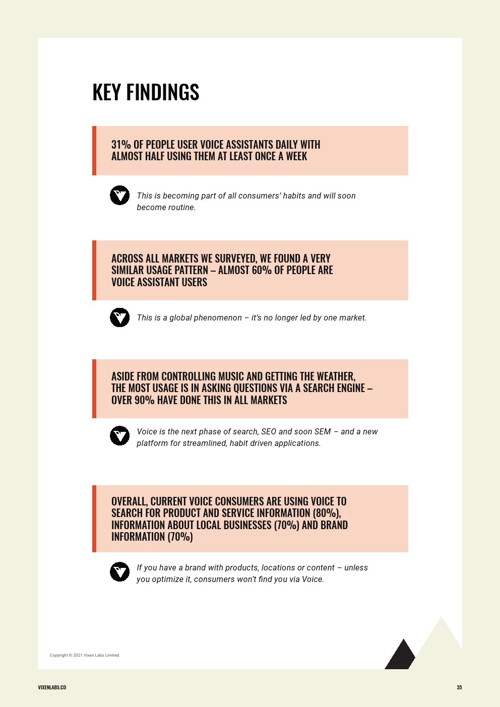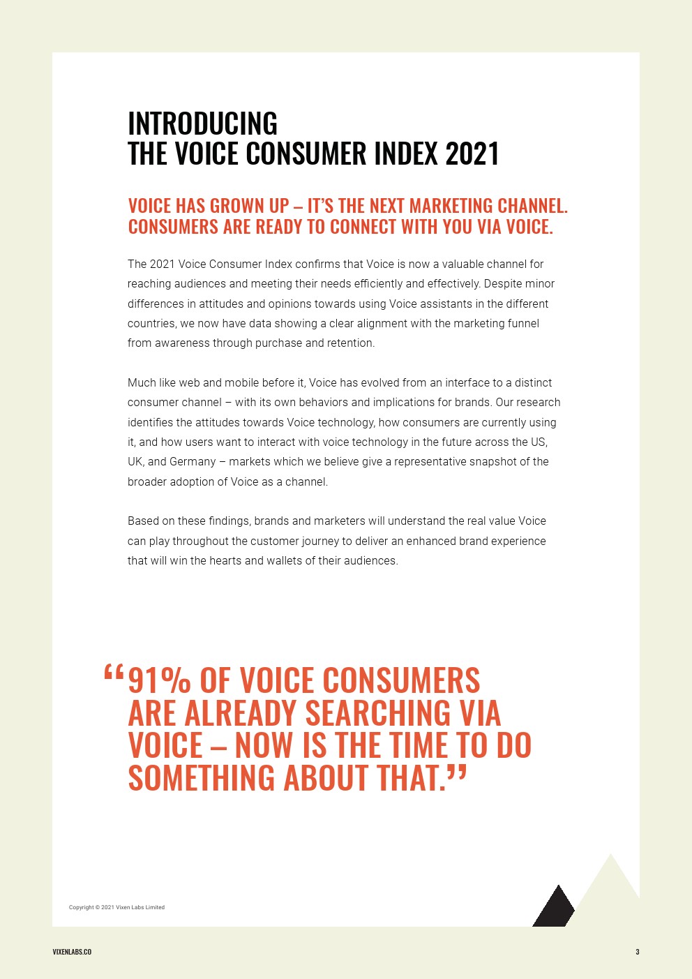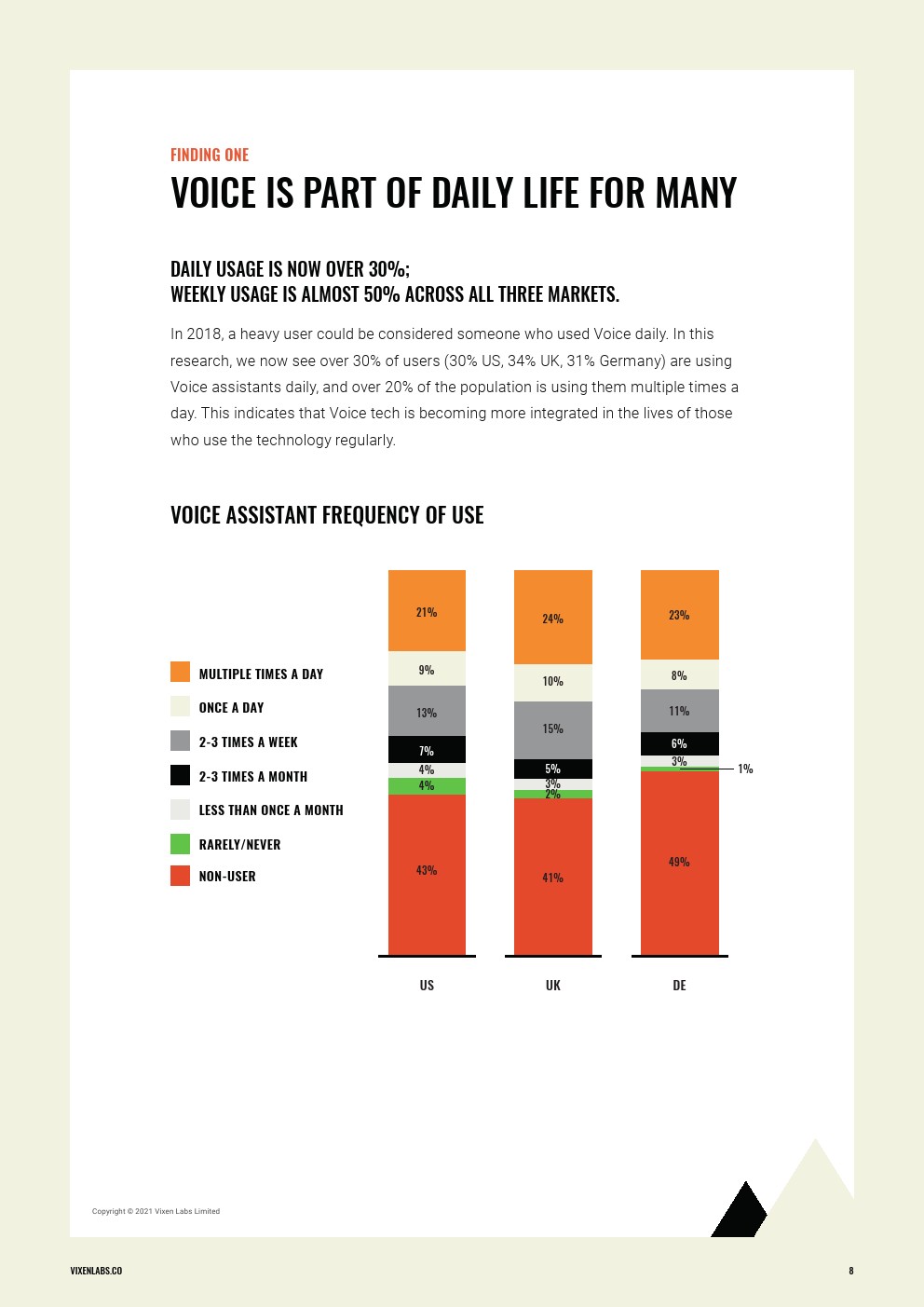 Vixen Labs发布了“2021年语音消费指数”。2021年的指数证实,语音现在是一个有价值的渠道,是接触受众和满足他们需要的高效和有效渠道。尽管不同国家对使用语音助手的态度和看法略有不同,但数据显示,从意识到购买和保留都与营销漏斗保持了清晰的一致性。