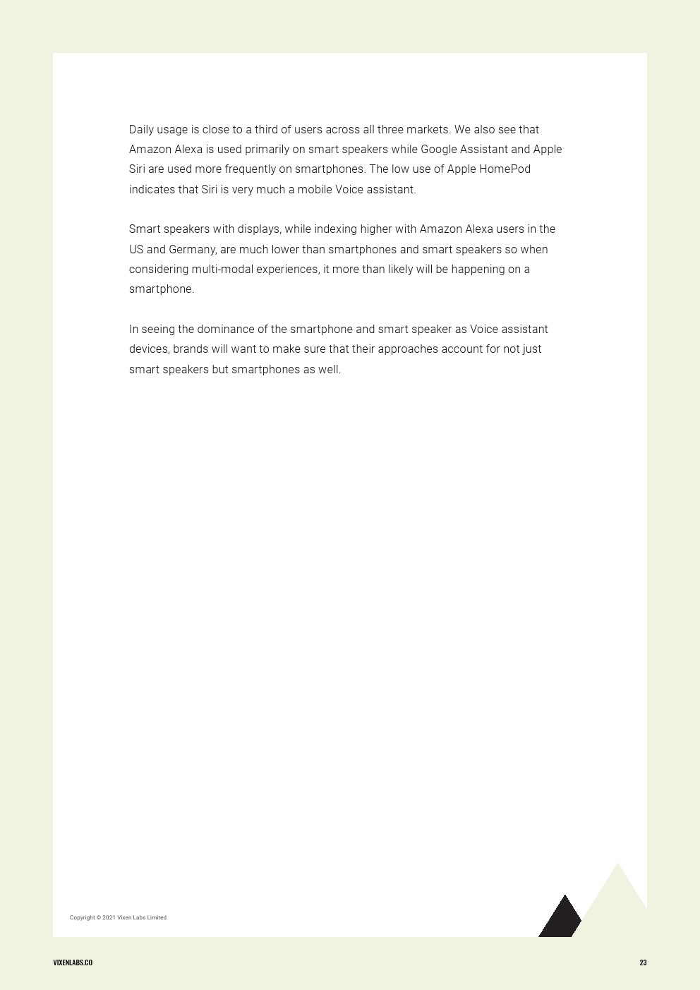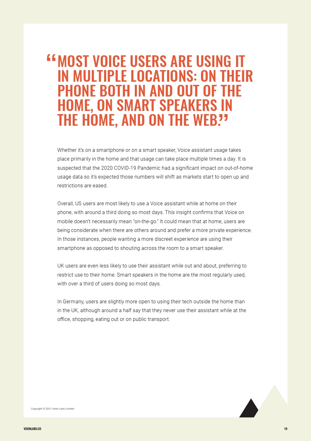 就像之前的网络和手机一样,语音已经从一个界面演变成了一个独特的消费渠道,它有自己的行为和对品牌的影响。研究分析了美国、英国和德国消费者对语音技术的态度、消费者目前如何使用语音技术,以及未来用户希望如何与语音技术互动,这些市场代表了语音作为一种渠道被广泛采用的趋势。