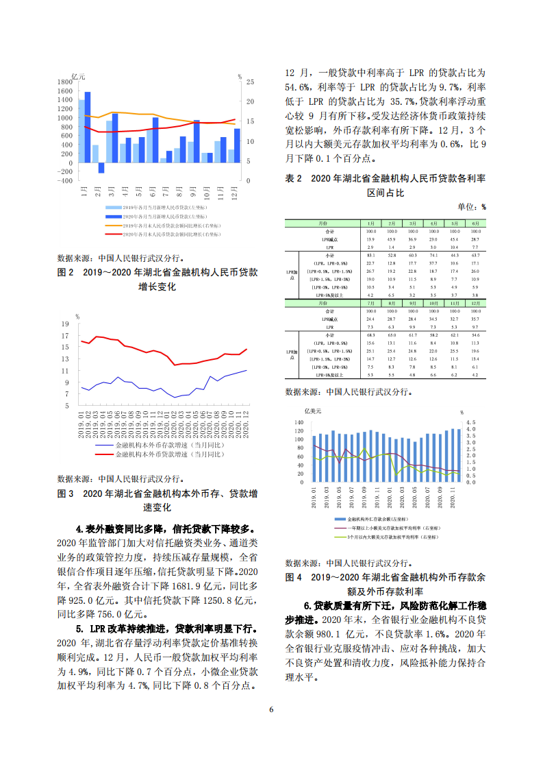 2020 年末, 湖北省本外币各项存款余额 6.7 万亿元,同比增长 10.9%,本外币各项贷款余额 6.0 万亿元,同比增长 14.6%。 经济运行主要呈现如下特点:一是三大需求逐步向好,进出口逆势增长。