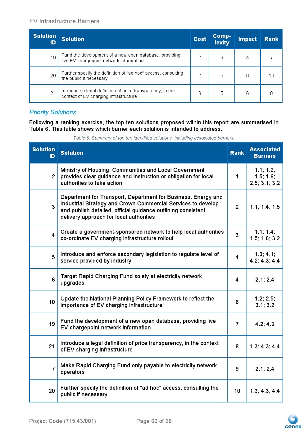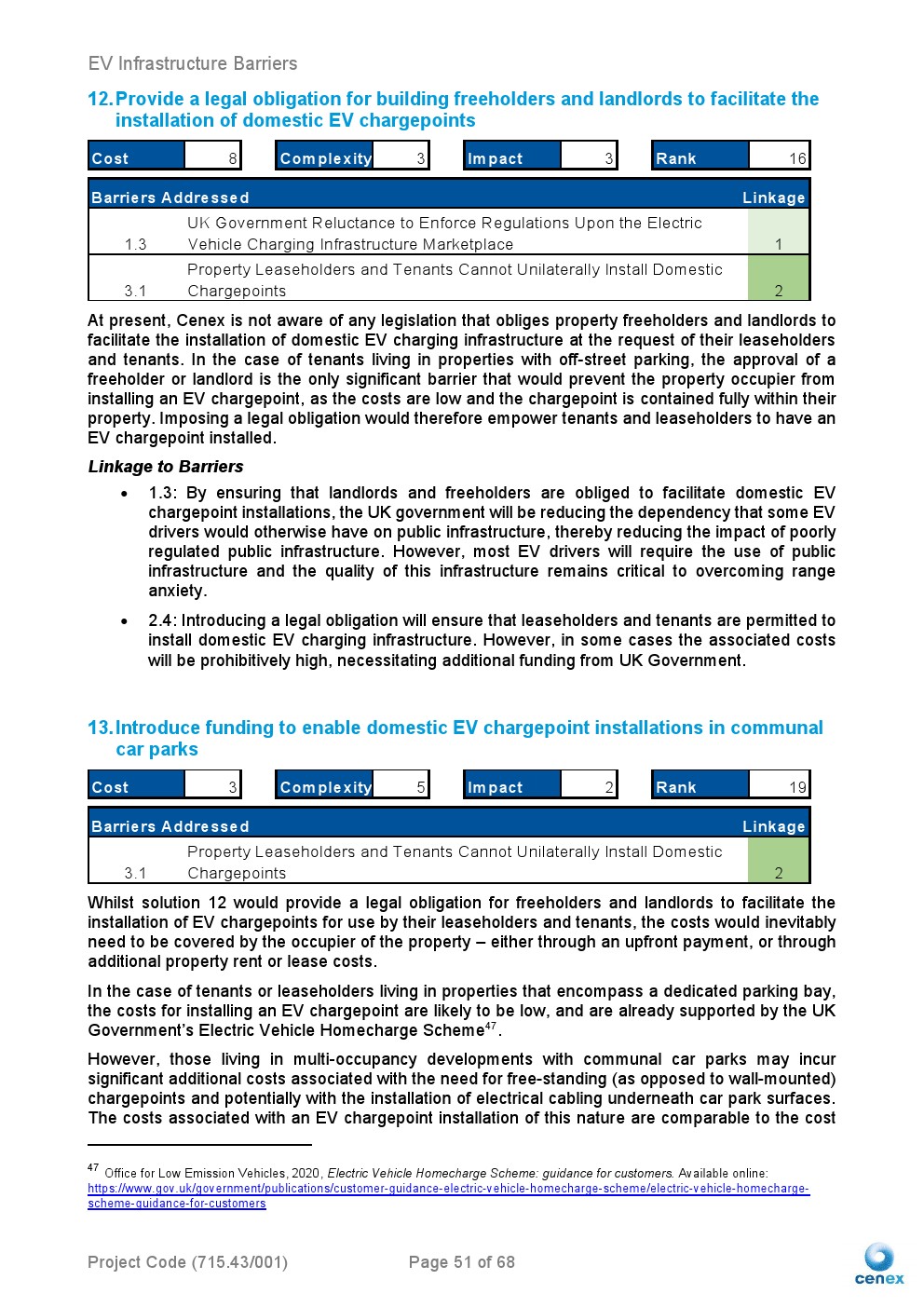 资本和收入缺乏可用、目标明确的资金来支付电网加固成本缺乏关于基础设施位置、规格和状态的准确开放数据缺乏可执行的规划要求物业承租人及租户不得单方面安装国内充电桩另一方面,报告公布了十个解决方案来解决这些障碍: