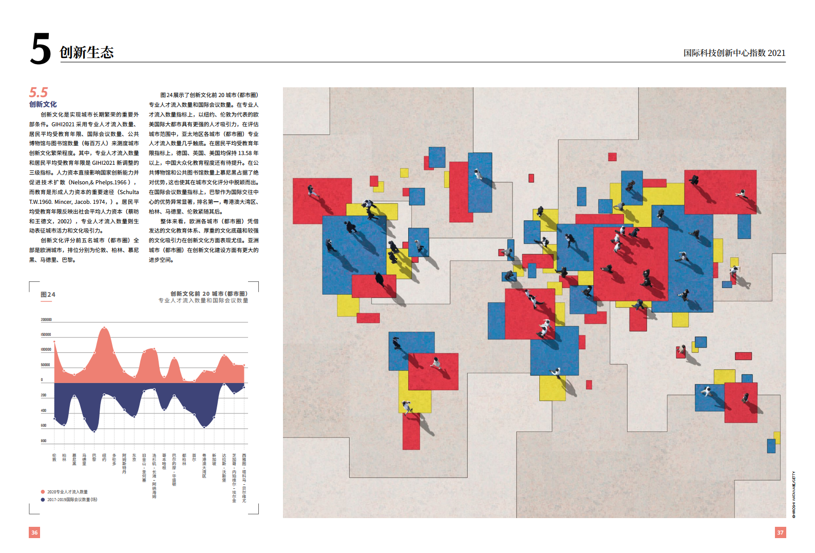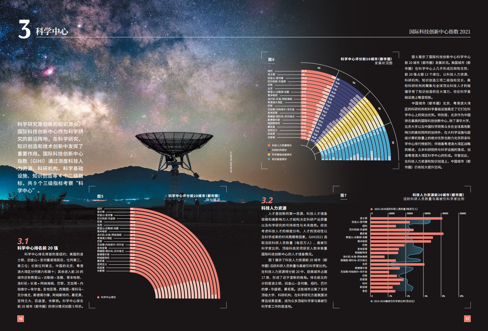 报告通过科学中心、创新高地、创新生态等三大维度32个指标,对全球50个城市(都市圈)的创新能力进行测度。