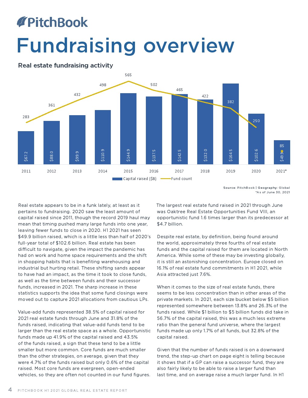 PitchBook发布了“2021年上半年全球房地产报告”。