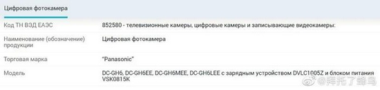根据外媒消息,松下在海外注册了DC-GH6M和DC-GH6L等不同的产品版本,以及充电器DVLC1005Z和电源适配器VSK0815K,值得相信离正式发布不会遥远。