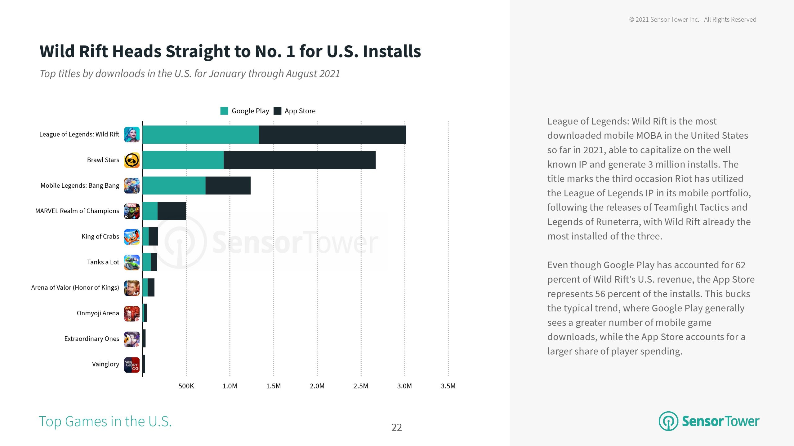 自2015年发布以来,《王者荣耀》在西方被称为“英勇竞技场”,已成为全球App Store 和 Google Play 中收入最高的手机游戏,玩家总消费超过100亿美元。这一游戏继续获得巨大成功,并在2021年收入超过20亿美元。