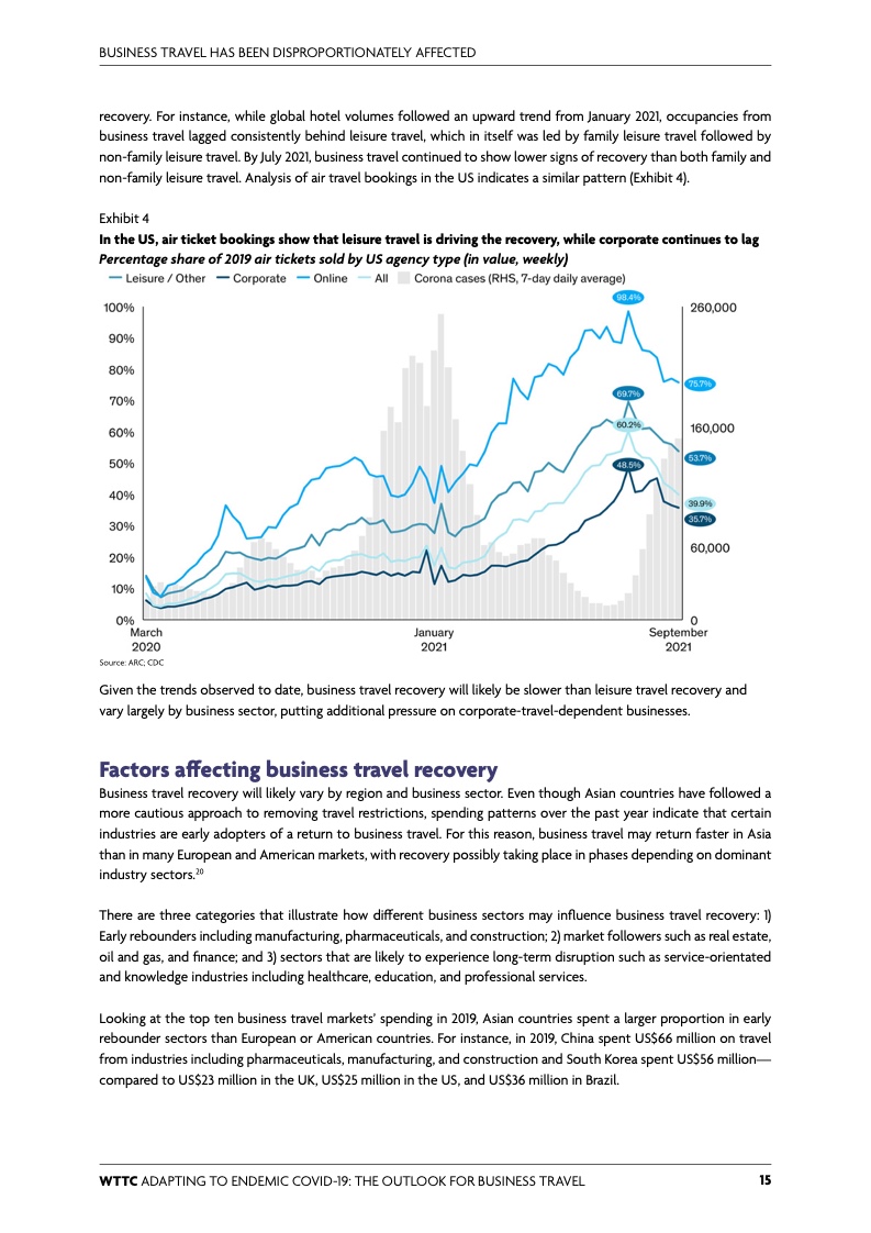 分析显示,2019年多数主要国家20%的旅游收入依赖商务旅行,其中75 – 85%是国内旅行。