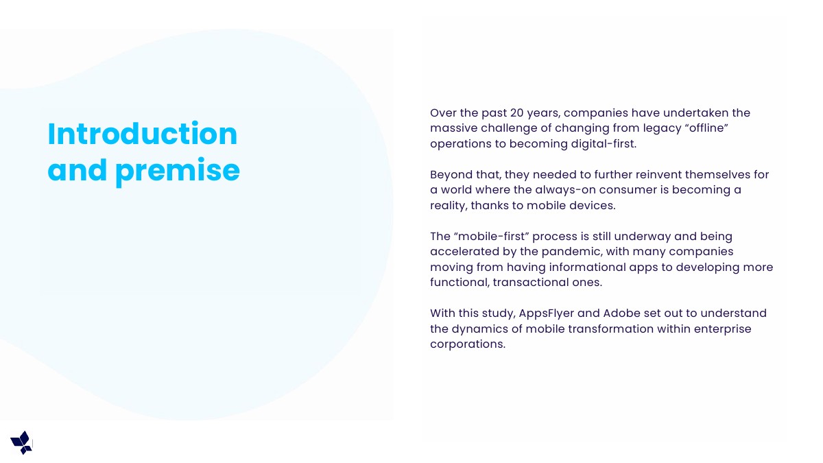 AppsFlyer发布了“2021年移动优先企业报告”。这项 B2B 调查是在企业高管中进行的,这里定义为拥有 1,000名或更多员工、参与数字运营、增长和营销角色的高管。对302 名受访者的定量调查是在2021 年 8 月 29 日至 10 月 5 日进行的,还包括8 次 VP 级高管的定性调查。