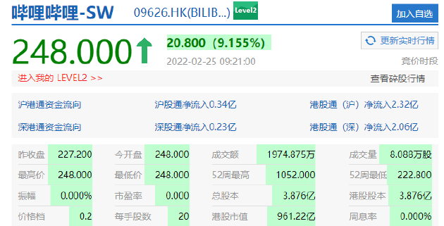 新浪科技讯 2月25日上午消息,恒生科技指数开盘涨1.7%,B站高开逾9%,网易涨3.5%。
