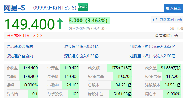 消息面上,网易昨日发布Q4财报,2021年第四季度实现营业收入同比增长23.3%,至243.74亿元;净利润为56.63亿元,同比增长5倍。