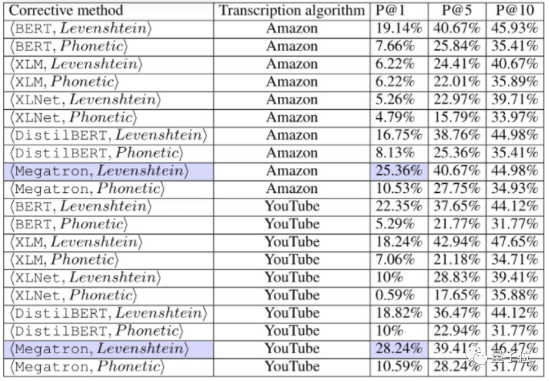 最终,Megatron和Levenshtein等模型展现出了最好的修复效果,分别给亚马逊AI带来了超过25%的正确修复率,给GoogleAI带来了超过28%的修复率。