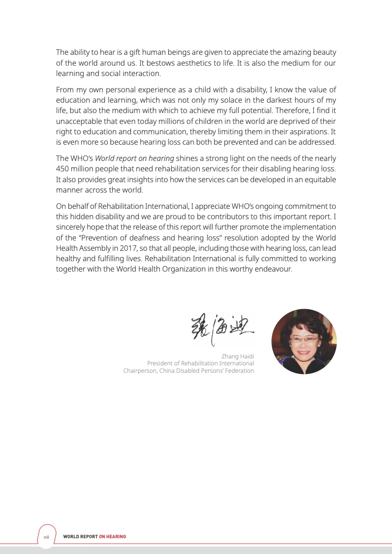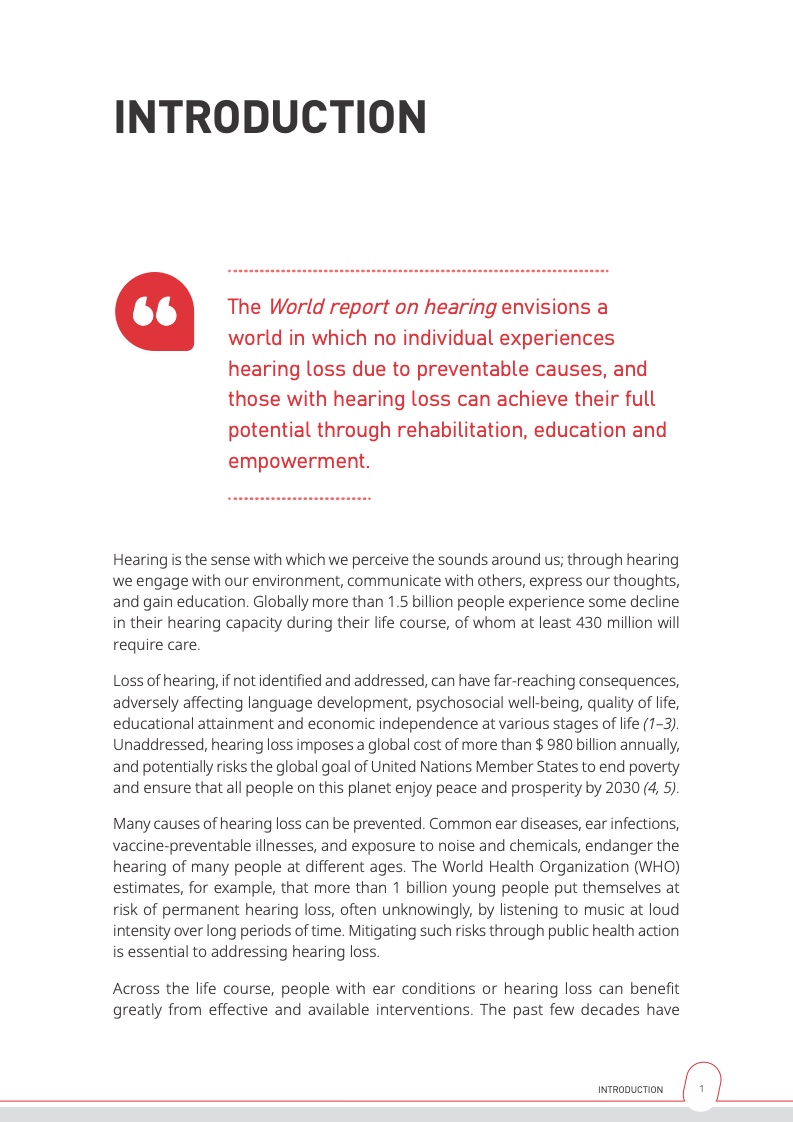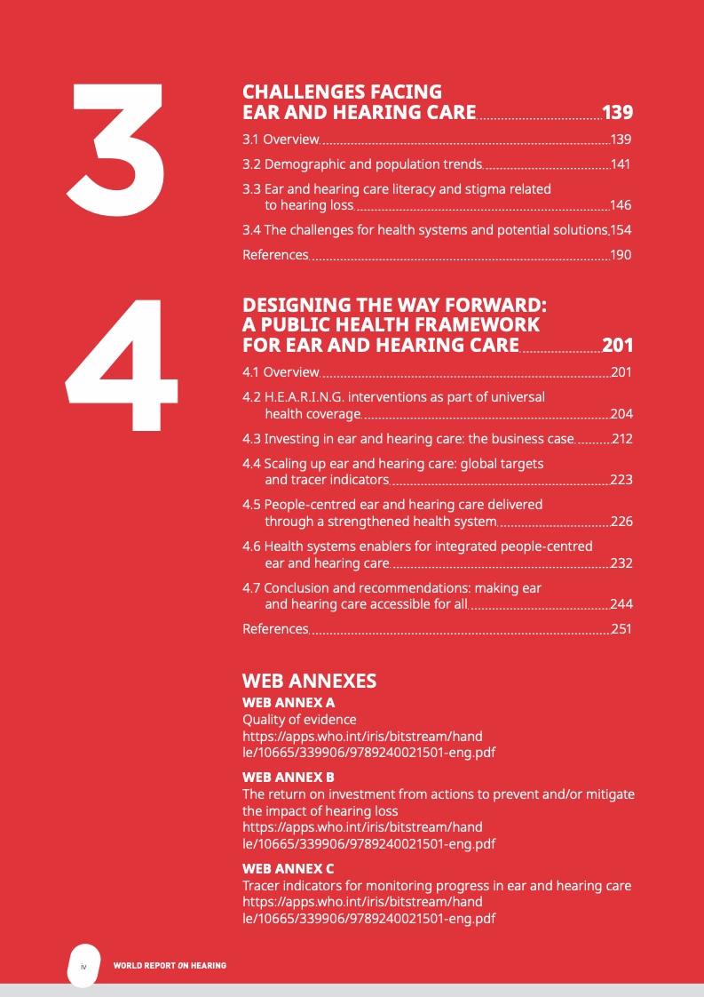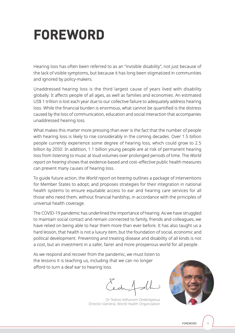 世界卫生组织写道,如不采取应对,听力损失将对人们的健康和福祉产生影响,同时也会因人们在交流,教育和就业中受到排挤而造成巨大的经济损失。