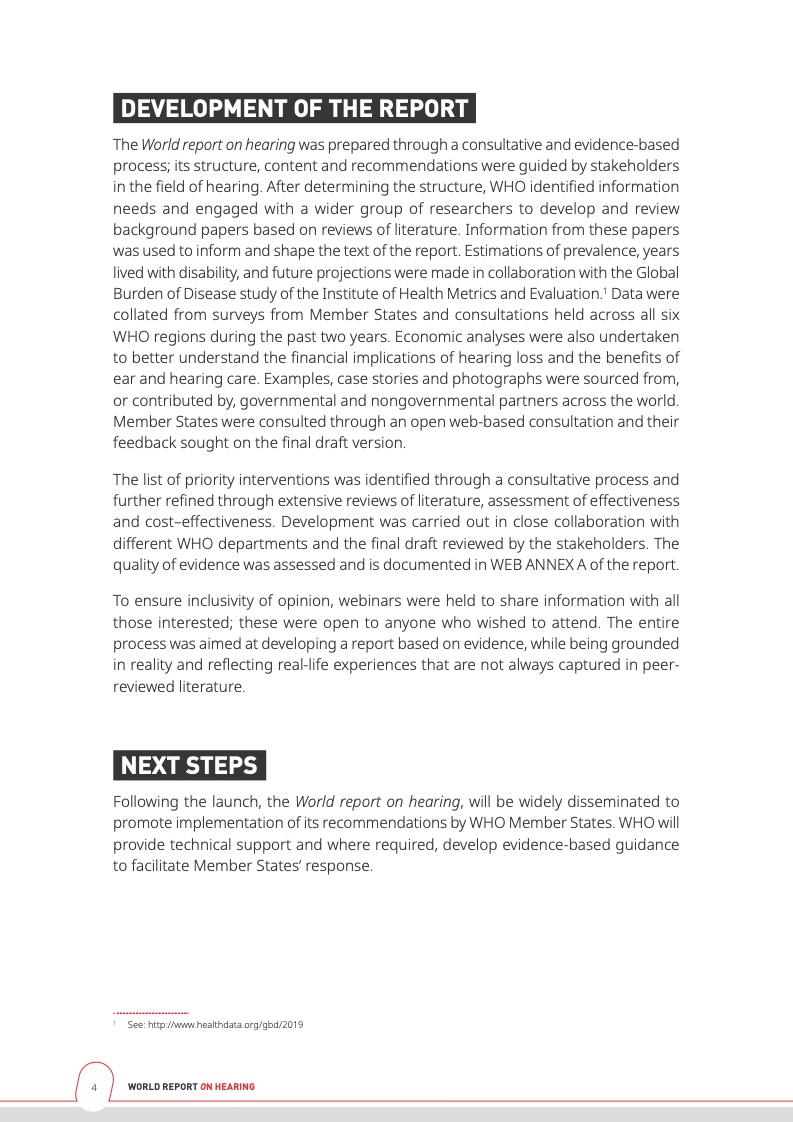 世界卫生组织在报告中写道,创新的、具有成本效益的技术和临床解决方案可以改善大多数听力损失患者的生活质量,且目前已经有数百万人从中受益。将技术力量与公共卫生规划相结合,可以确保所有人受益其中,尤其是那些身处服务水平较低以及偏远地区的人们。