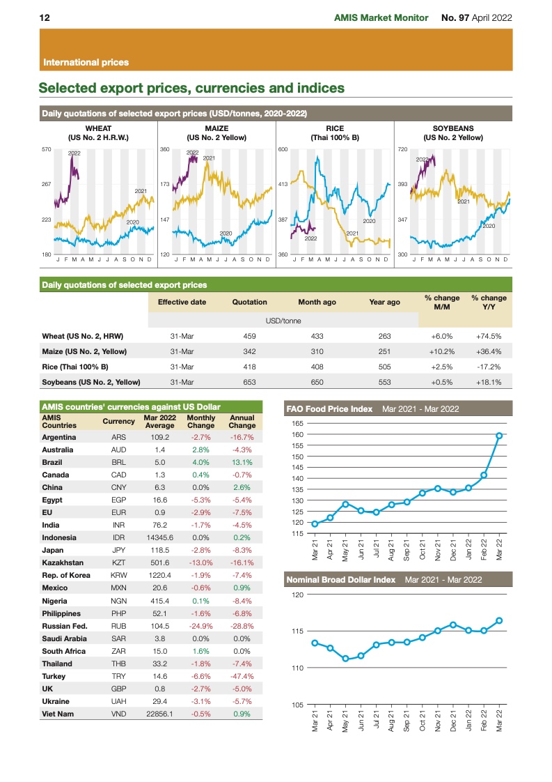 综合联合国粮农组织和世界谷物理事会等多个伙伴单位的市场监测数据,世界局势影响小麦等主要粮食供应,世界范围内的粮食价格在3月份飙升至历史新高。