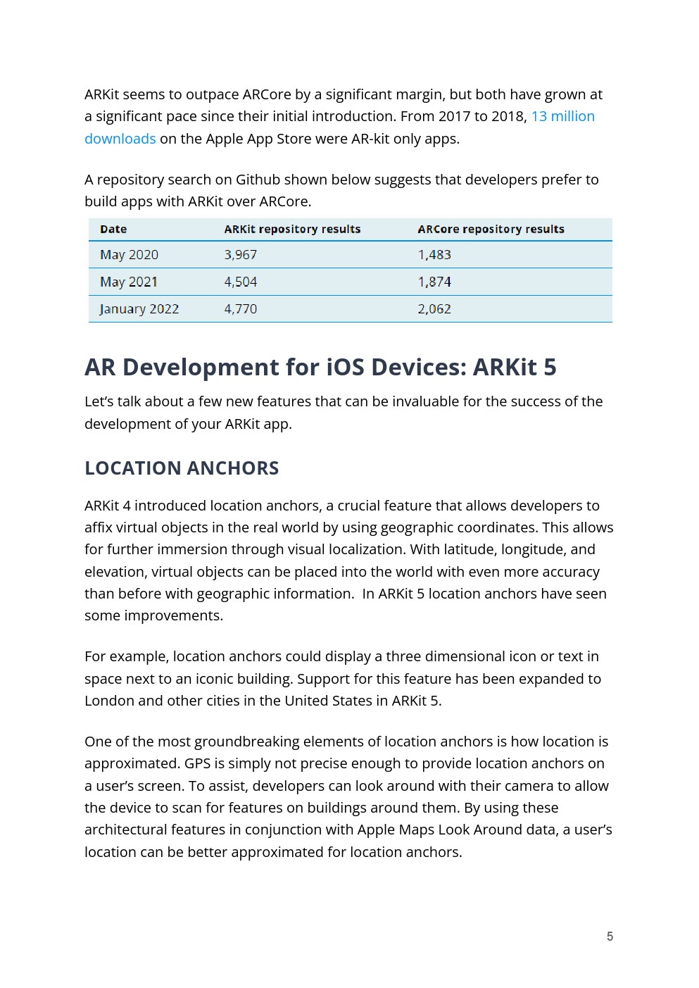 AR技术受众正在增长,尽管仍然处于早期采用阶段。ARtillery Intelligence报告称,美国成年人对具有AR功能的移动应用的使用量增长了29%。这主要是得益于iPhone和Android设备的原生ARKit 和ARCore架构上运行的专用AR应用程序。ARtillery Intelligence 还报告称,与应用程序中包含的AR功能和完全基于增强现实的应用程序相比,AR功能的参与度要高得多。