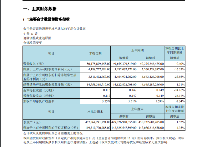 新浪科技讯 4月27日晚间消息,京东方A公告,2022年第一季度营收504.76亿元,同比增长0.4%;净利润43.89亿元,同比下降16.57%。