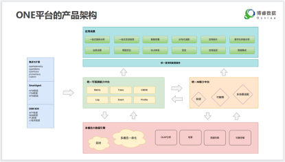 功能方面,ONE平台具备指标分析、统一告警、全局拓补、问题事件分析、开放集成、一来和影响分析等多个功能集成。