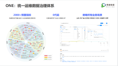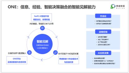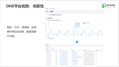 在具体的业务实践方面,博睿数据资深售前总监常旭介绍,ONE 平台将打通业务和运维,明确业务指标、转化率、客户留存率、客户流失率等,高效可视化故障域,降低业务客户流失率;同时,在新老平台的统一维护层面,可从0-1构建一体化智能可观测平台,降低业务、运维、研发的沟通成本,提升工作效率,进而提升用户活跃度和平均使用时长,助力企业提高数字化体验,赋能企业数字化转型。