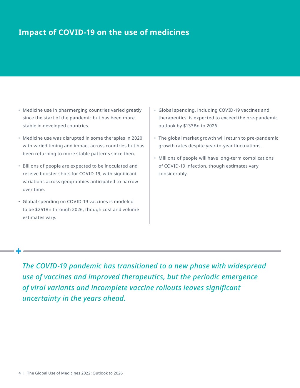尽管过去两年全球大流行带来不确定性,发达经济体和新兴经济体的医疗保健系统和政策制定者面临更可预测的挑战和机遇,因此全球药品支出的前景变得更加清晰。医疗保健在 COVID-19 期间表现出显著的弹性,但挑战依然存在——基于证据的决策比以往任何时候都更加重要。