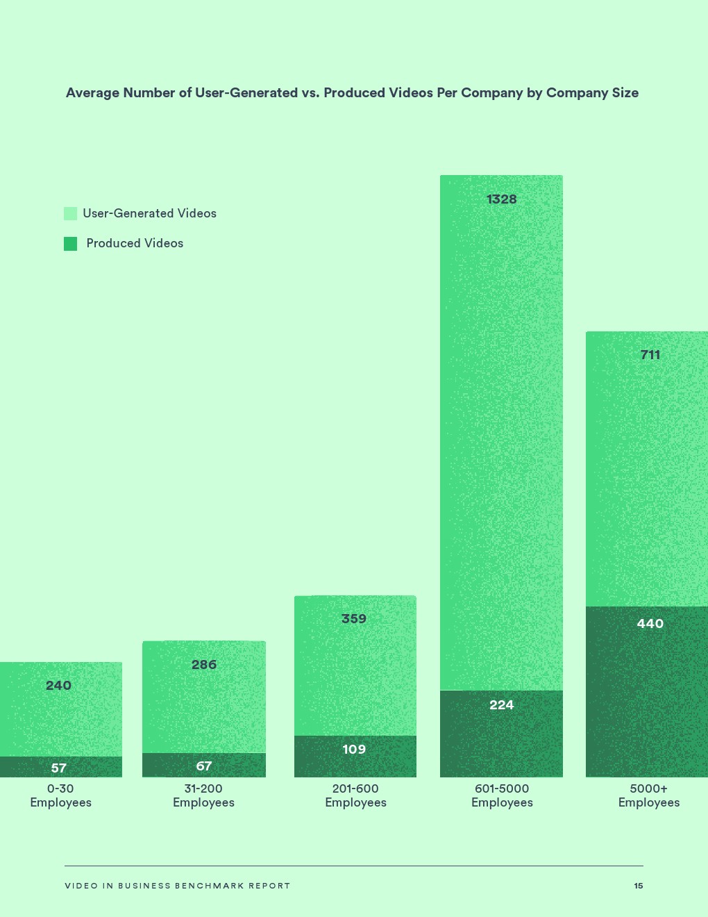 4、200人以下的公司创建的视频中有81%是用户生成的。对于员工人数超过600人的公司,75%的视频是用户生成的。