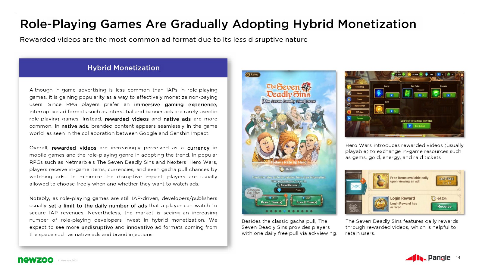 3、尽管 RPGs在历史上是仅限IAP的游戏,但混合货币化正在这一类型中迎头赶上。一些角色扮演游戏现在实施混合货币化,同时提供应用内购买(IAPs)和应用内广告(IAAs)。在各种广告格式中,奖励视频是最常见的形式。