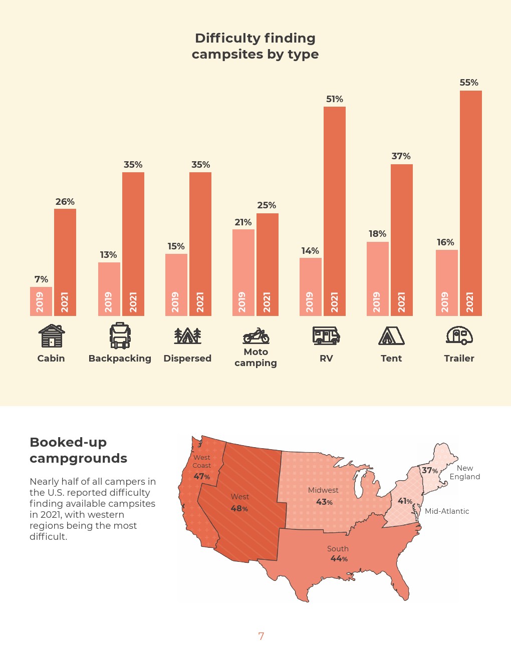 这已经不是什么秘密了:露营的受欢迎程度在2021年飙升。无论您将其归因于更多人有空闲时间还是希望摆脱日常生活,这种增长都意味着可预订露营地的短缺。露营者表示,2021年预定露营地的难度几乎是前几年的3倍。