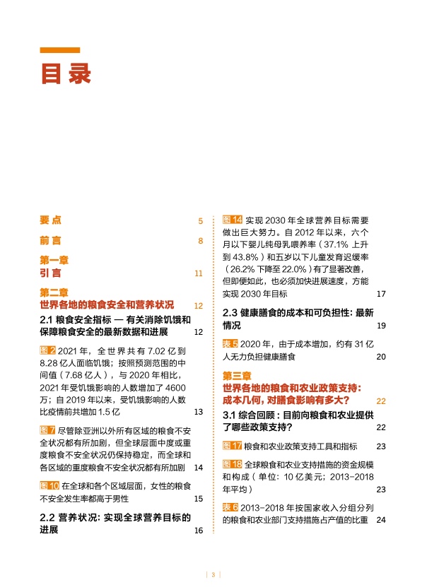 报告介绍了全球粮食安全和营养最新状况,并提供了健康膳食成本和可负担性的最新估算结果。鉴于世界多数国家的公共资源有限,报告还为各国政府出谋献策,旨在通过调整当前对农业的支持方式,努力降低健康膳食成本。