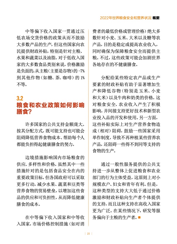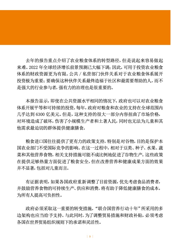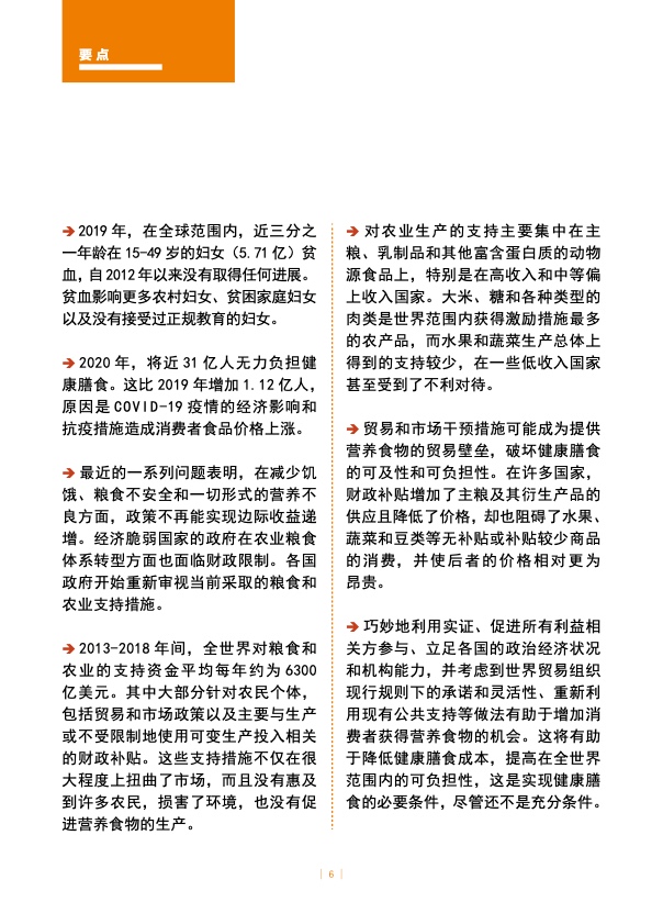 有证据表明,如果政府调整当前资源投入方向,鼓励营养食物的生产、供应和消费,势必会进一步降低健康膳食成本,确保所有人都能公平获取更经济实惠的健康膳食。